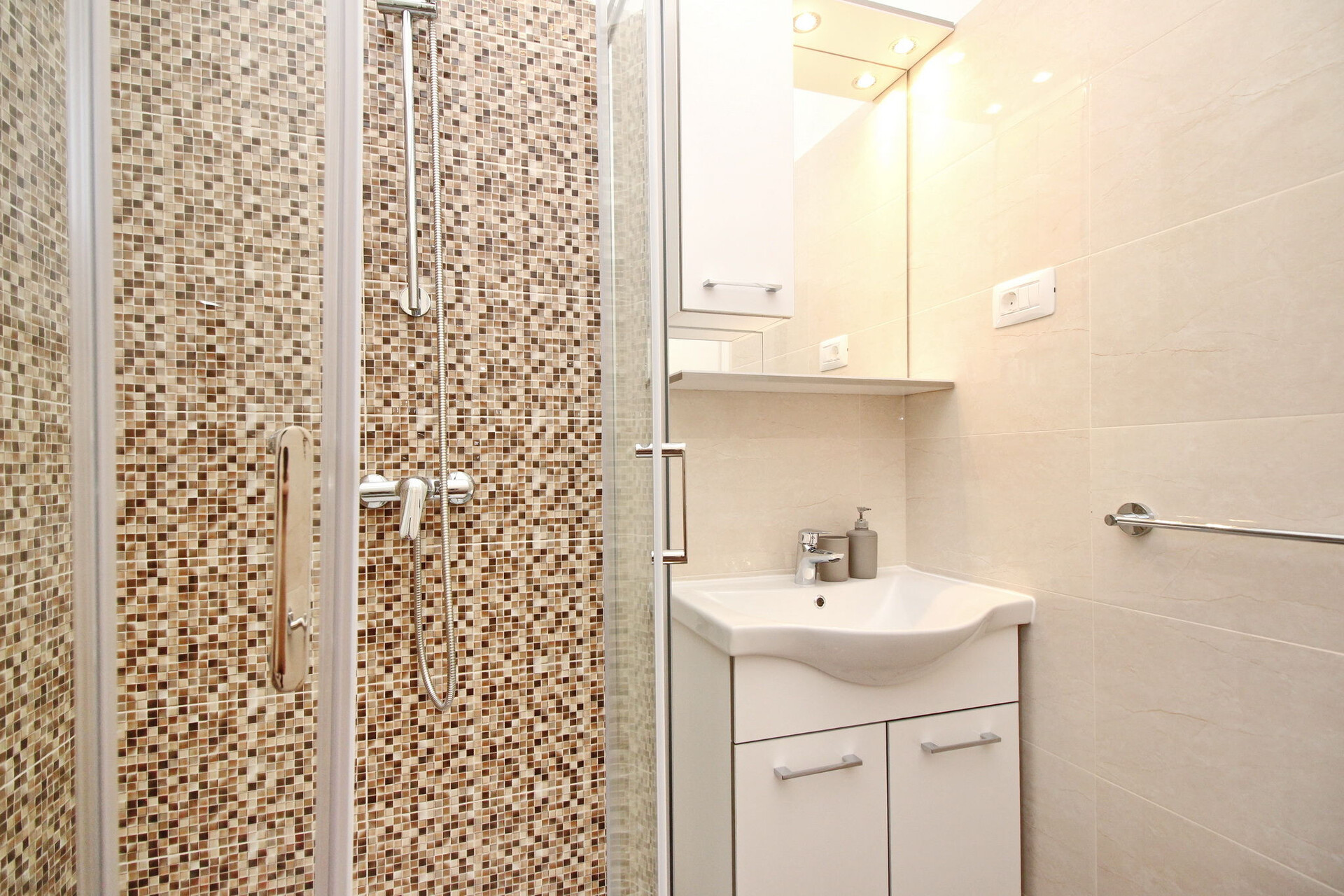 • zuhanyzó, zuhanyzó fülke, hajszárító, törölköző.