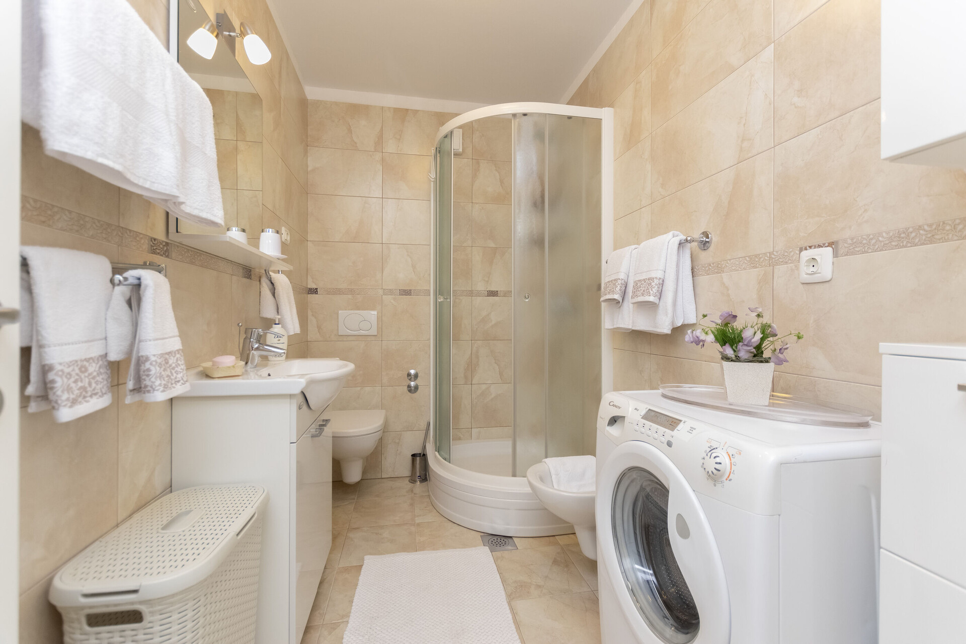 • zuhanyzó, zuhanyzó fülke, mosógép, hajszárító, törölköző.
