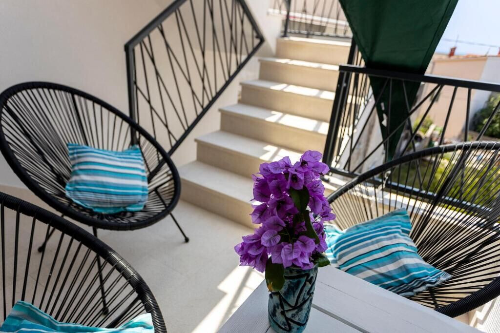 Wi-Fi gratuito, la vista sul mare, Il superficio totale dello spazio interno 42 m2 (senza le terazze e giardini), L'unità si trova, Le camere 2, I bagni 1, I balconi 1, il climatizzatore incluso nel prezzo, la tv, i canali satellitari.