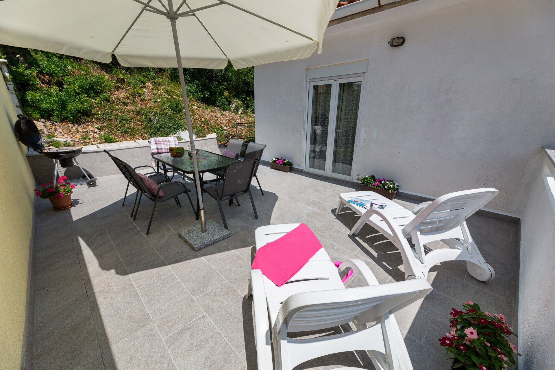 • Wi-Fi gratuito, la vista sul giardino, Il superficio totale dello spazio interno 75 m2 (senza le terazze e giardini), L'unità si trova, Le camere 2, I bagni 2, I balconi 1, il climatizzatore incluso nel prezzo, la tv.