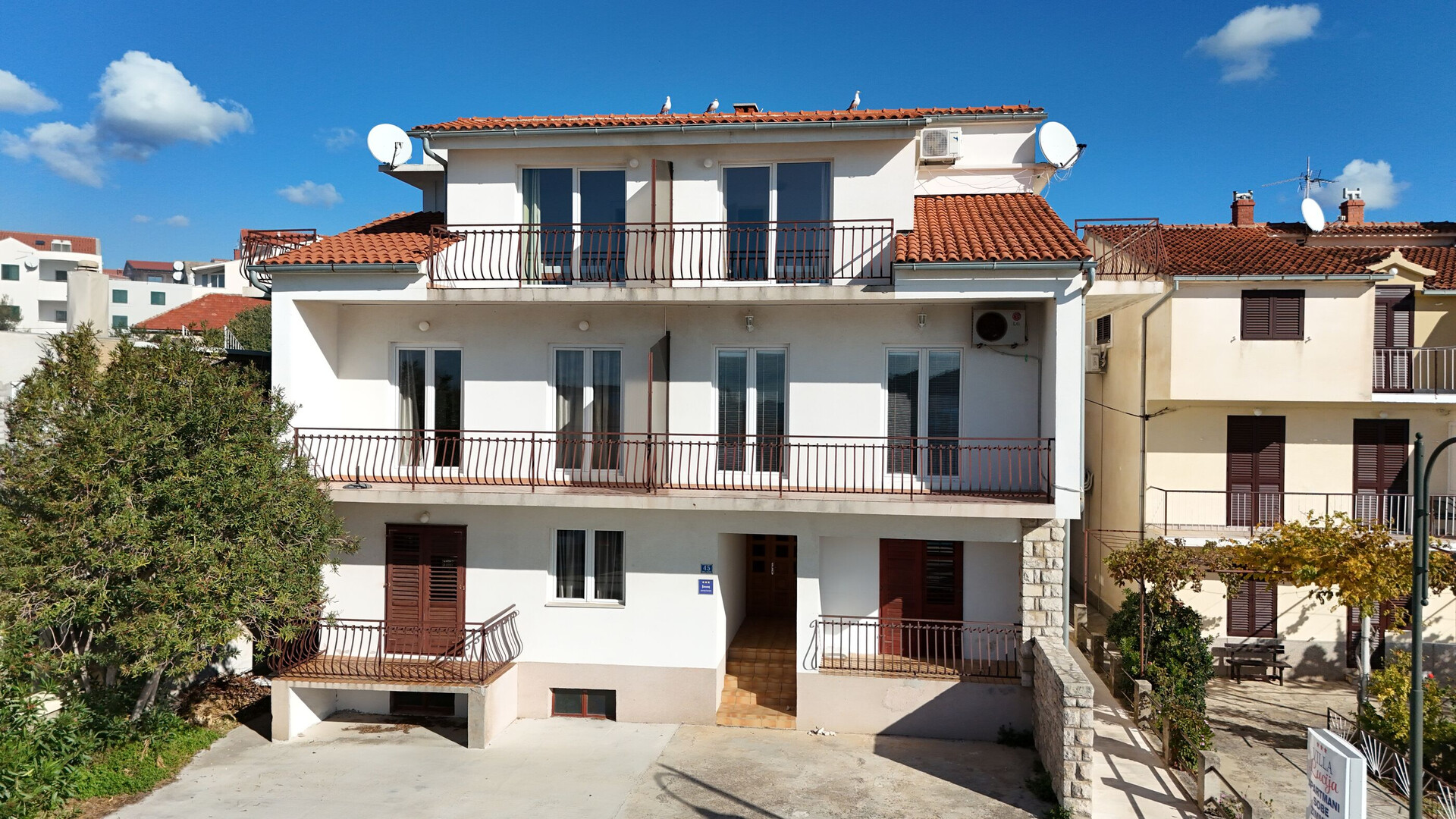 Wi-Fi gratuito, la vista sul mare, Il superficio totale dello spazio interno 100 m2 (senza le terazze e giardini), Le camere 3, I bagni 2, I balconi 1, il climatizzatore incluso nel prezzo, la tv, i canali satellitari.