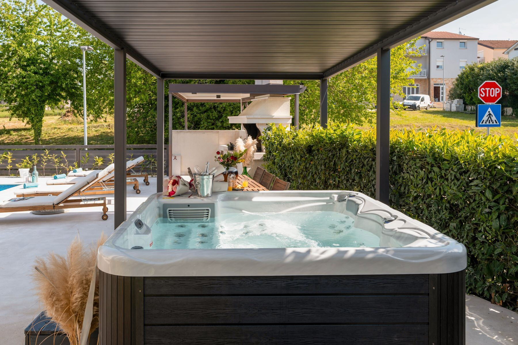 бесплатен wifi, поглед на градина, Вкупна квадратура на внатрешниот простор 160, спални соби 2, купатила 3, Број на тераси 1, клима апарат врачунат во цената, ТВ, сателитски програми.
