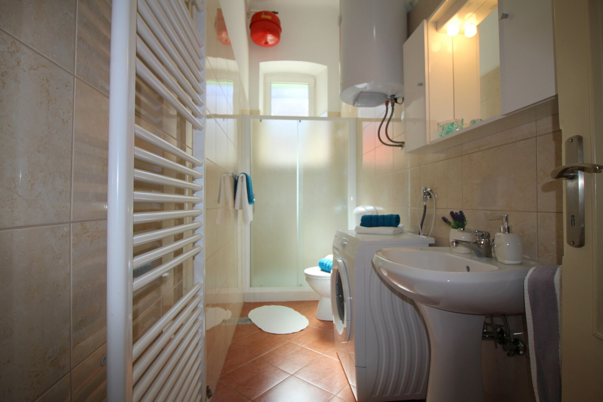 • туш, туш кабина, машина за перење, фен, пешкири.
