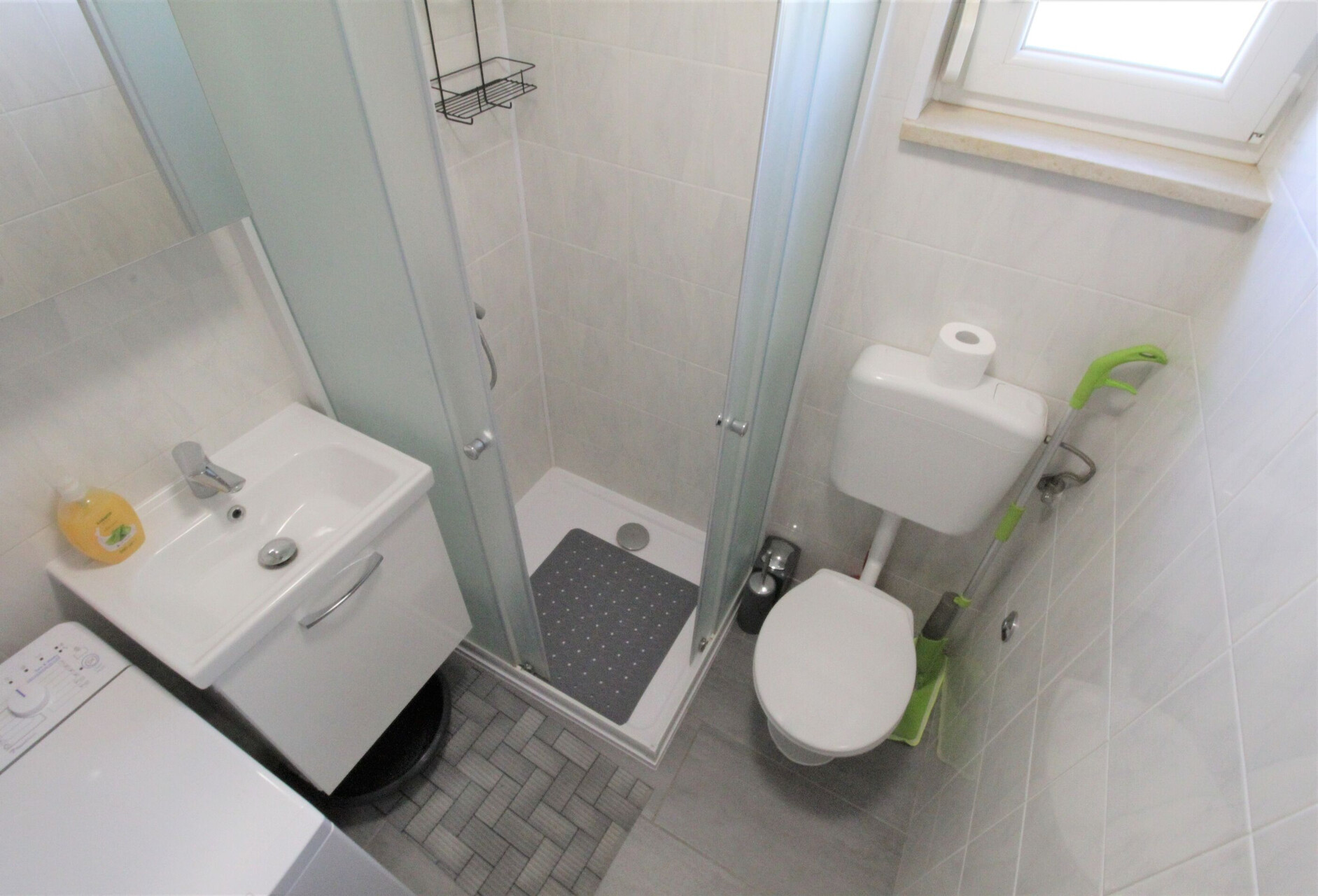 • туш, туш кабина, машина за перење, пешкири.