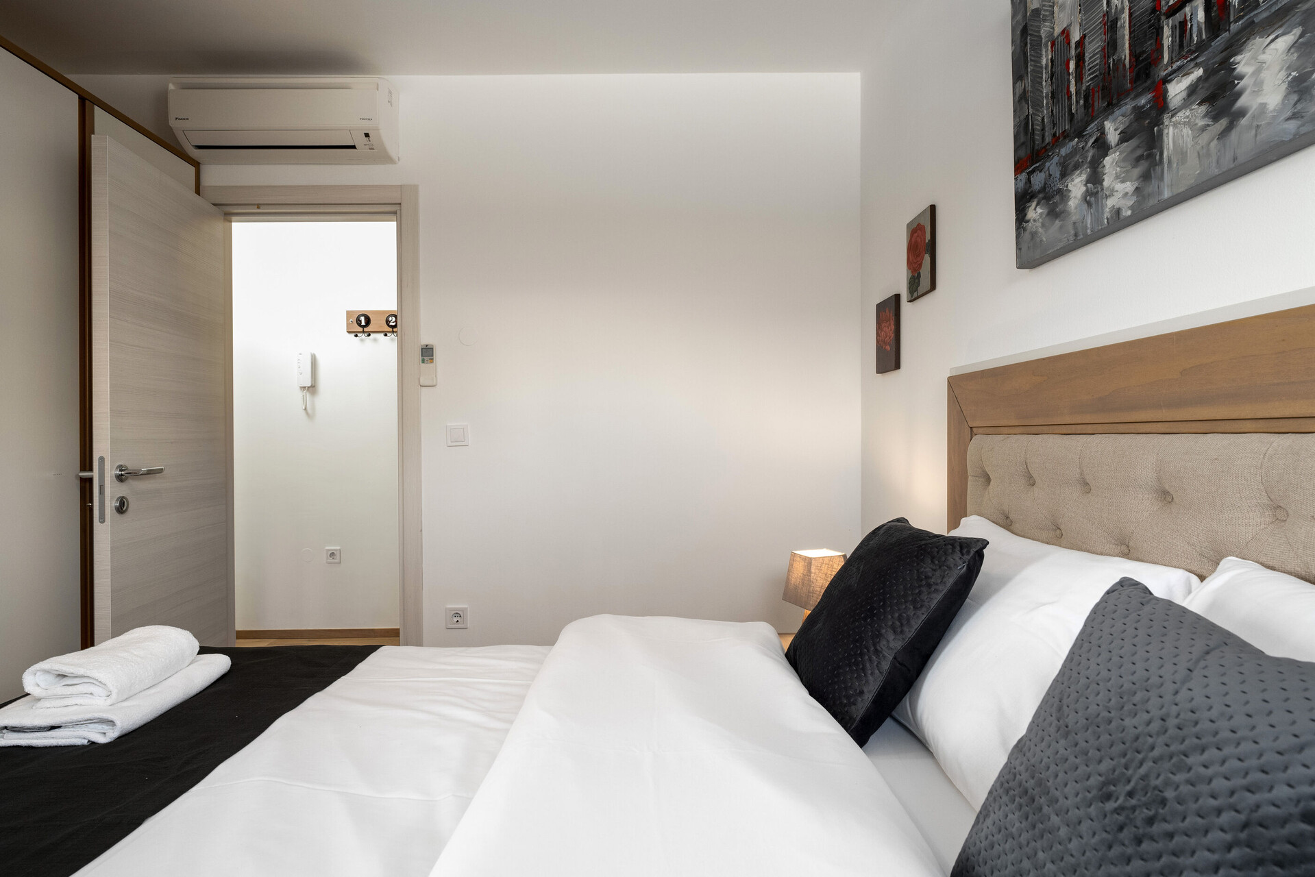 • Кревети . Постелнината е расположива за употреба. Од собата се излегува на тераса.