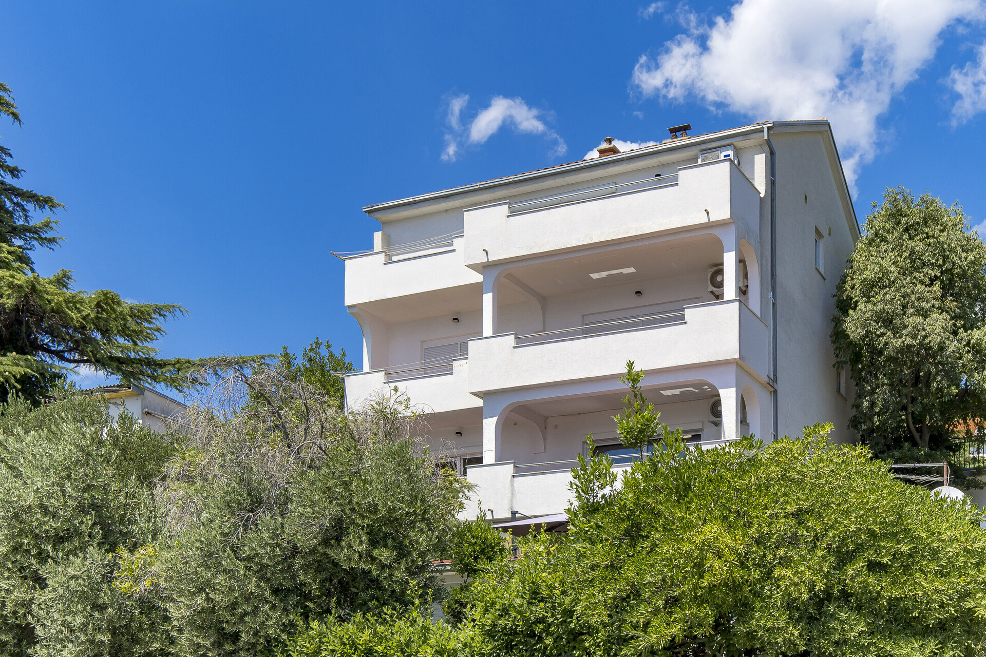 бесплатен wifi, делумен поглед на море, Вкупна квадратура на внатрешниот простор 140, Спрат на сместувачката единица, спални соби 3, купатила 2, Број на тераси 1, клима апарат врачунат во цената, ТВ, сателитски програми.
