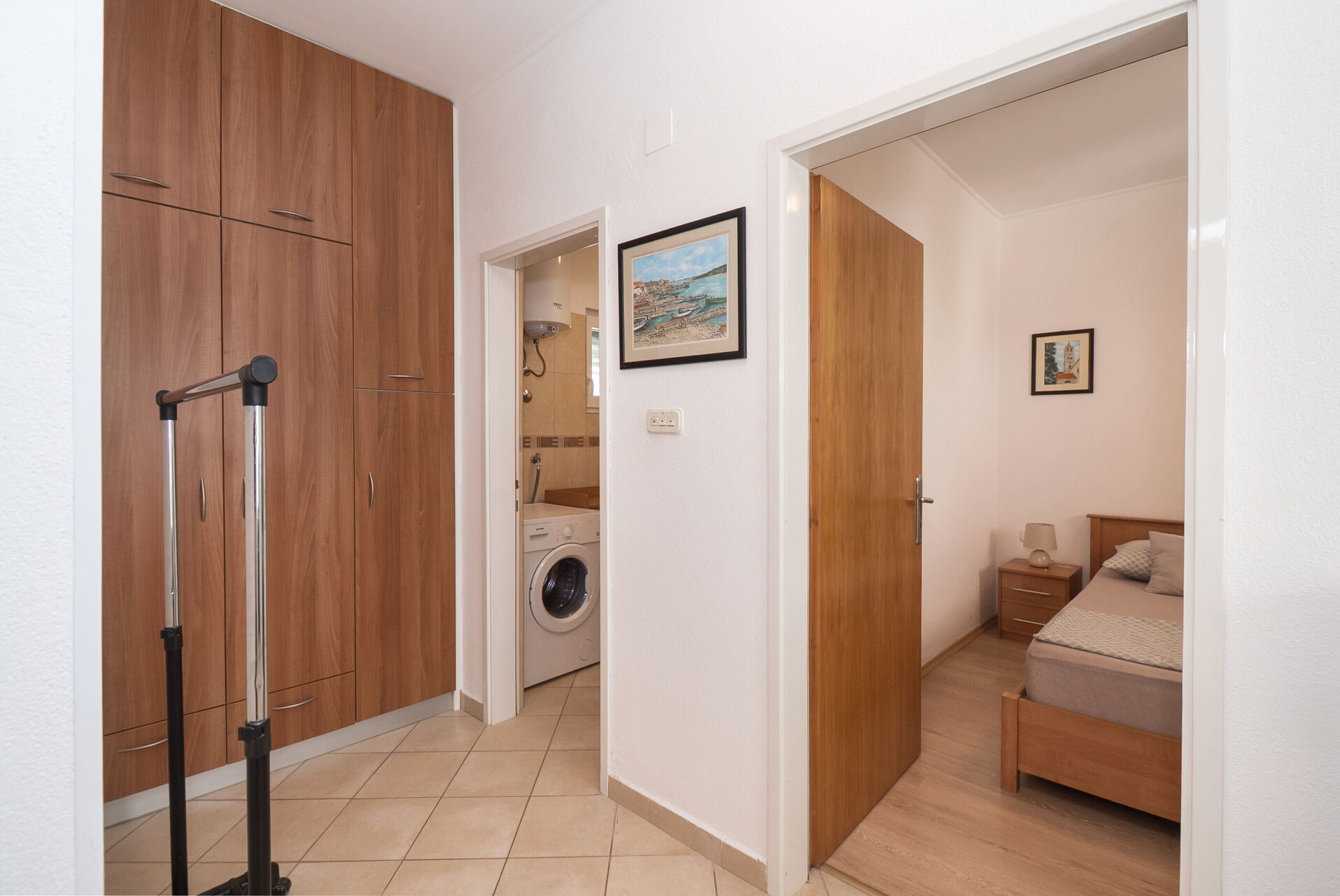 • туш, туш кабина, машина за перење, фен, пешкири.