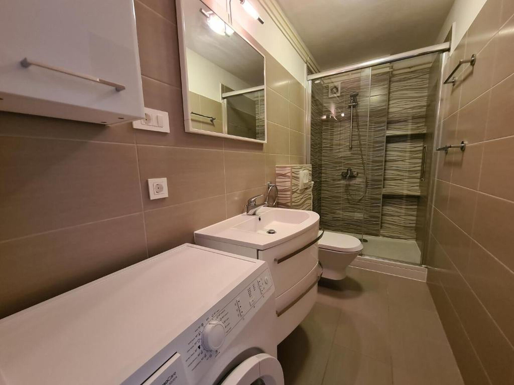 • туш, туш кабина, машина за перење, фен, пешкири.