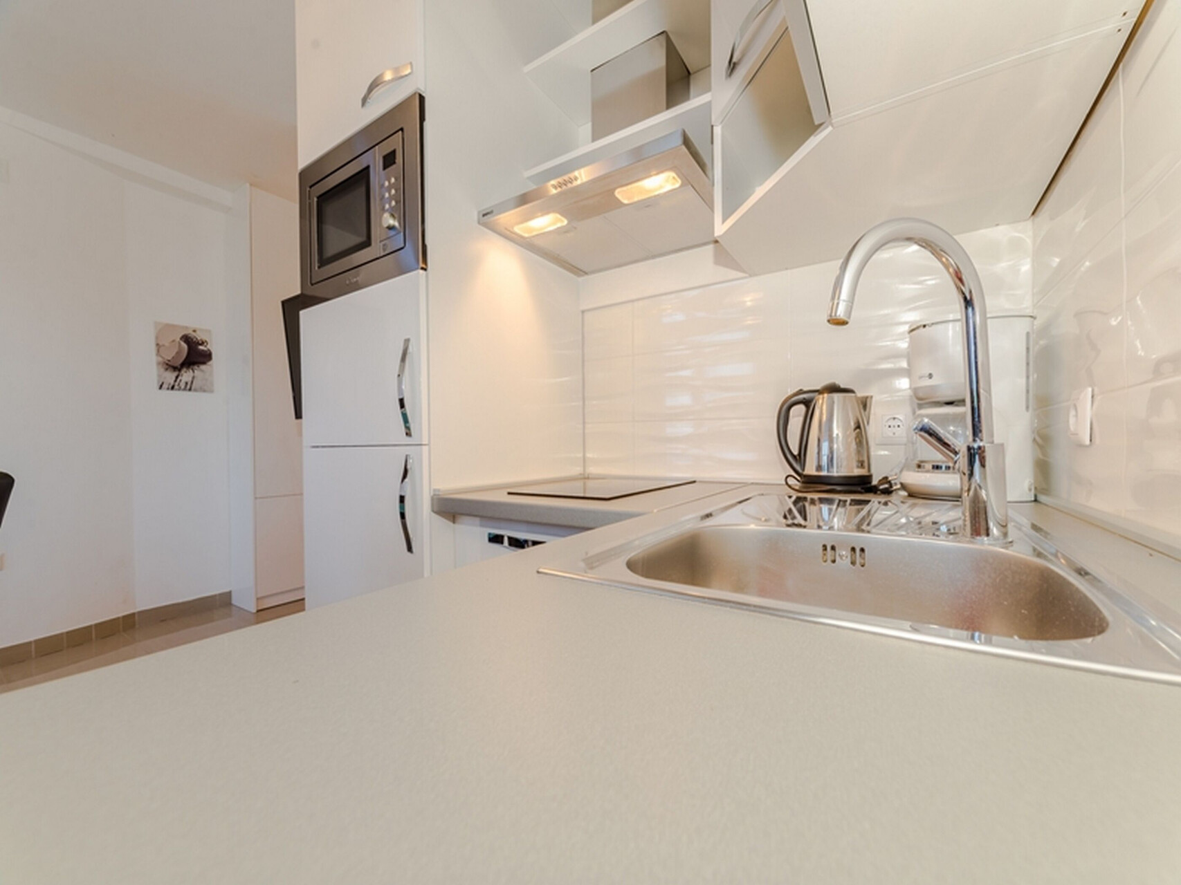 • маса и столчиња, лавабо, рерна, фрижидер, замрзнувач, апарат за варење на вода, апарат за филтар кафе, микровална, тостер, шпорет за готвење.