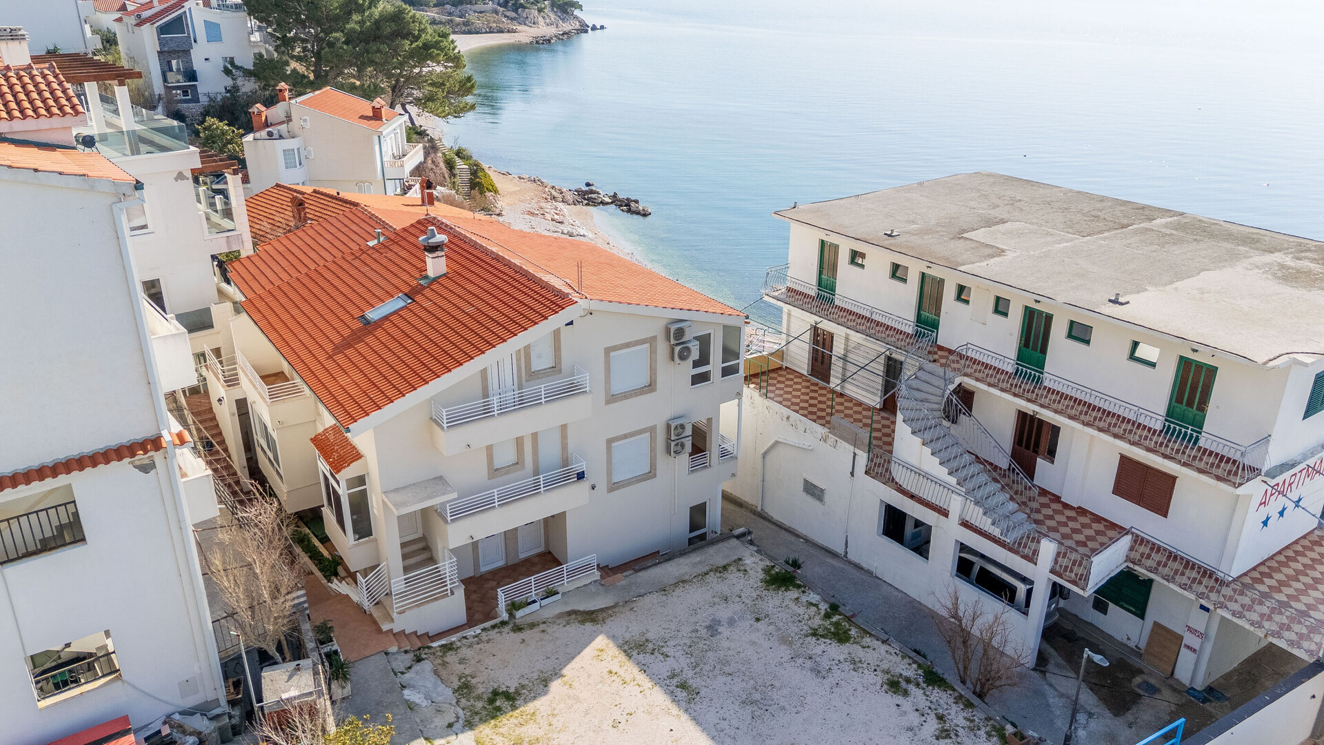 бесплатен wifi, делумен поглед на море, Вкупна квадратура на внатрешниот простор 45, Спрат на сместувачката единица, спални соби 1, купатила 1, Број на тераси 1, клима апарат врачунат во цената.