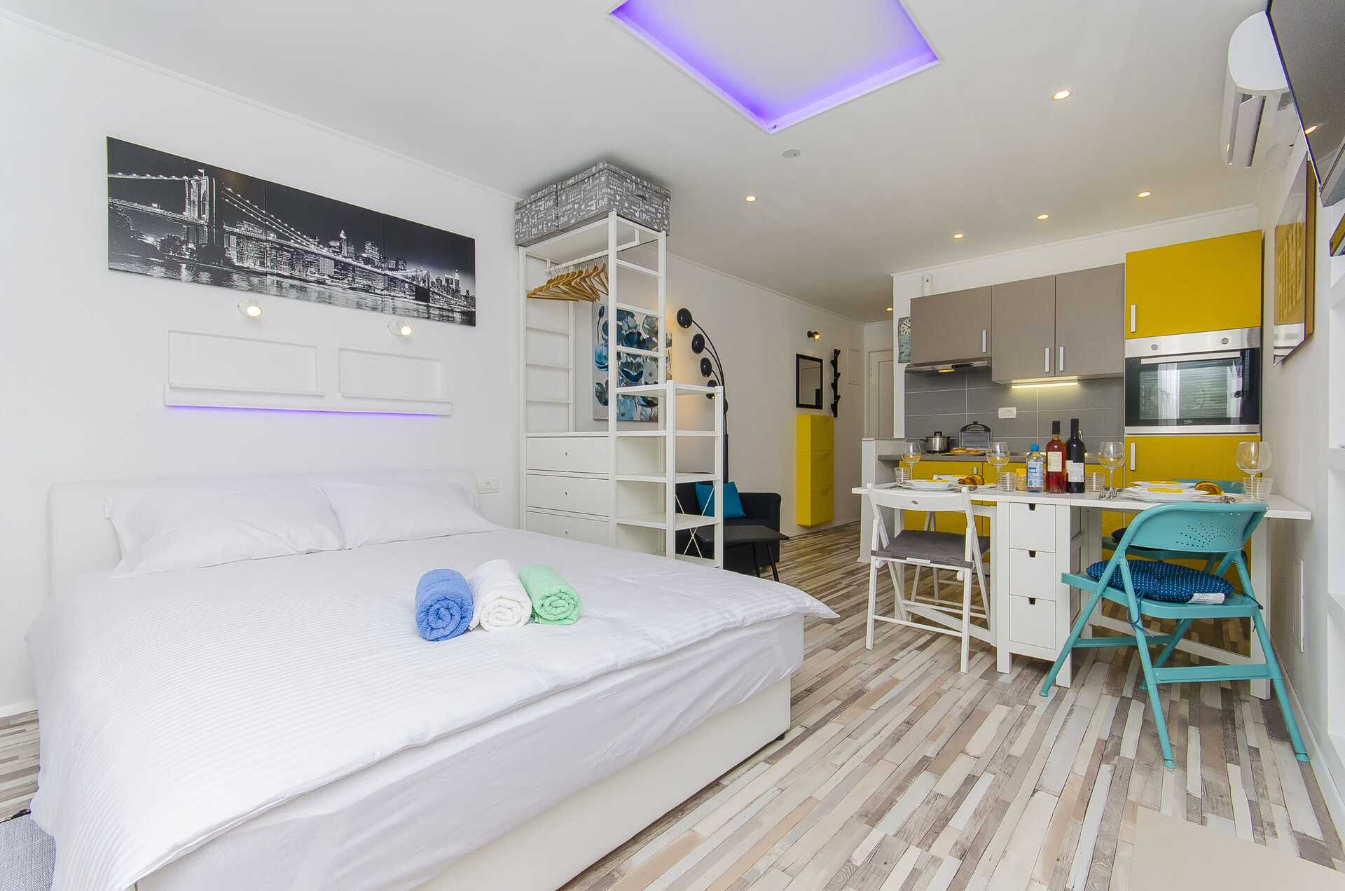 • бесплатен wifi, Вкупна квадратура на внатрешниот простор 28, Спрат на сместувачката единица, спални соби 0, купатила 1, Број на тераси 0, клима апарат врачунат во цената, ТВ.