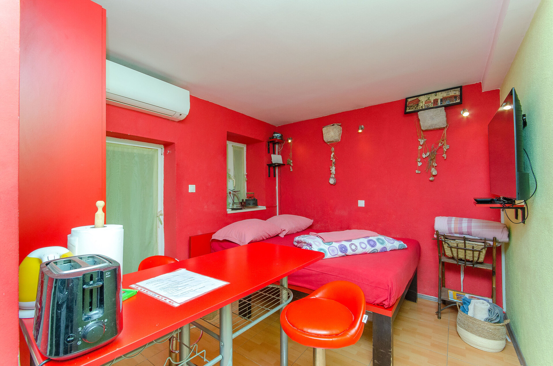 • бесплатен wifi, Вкупна квадратура на внатрешниот простор 23, Спрат на сместувачката единица, купатила 1, Број на тераси 1, клима апарат врачунат во цената, ТВ.