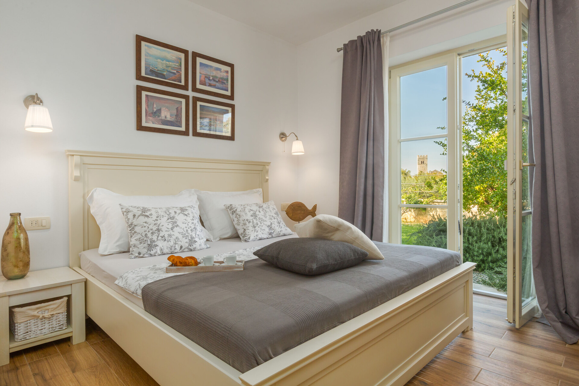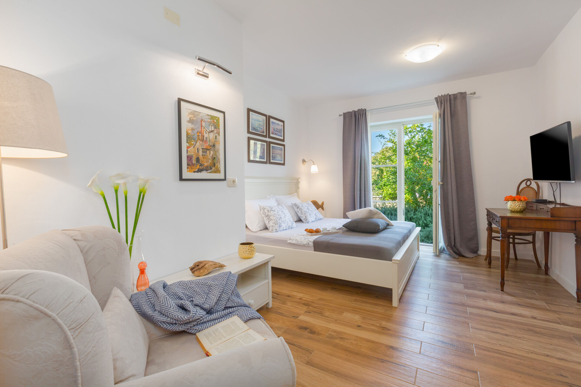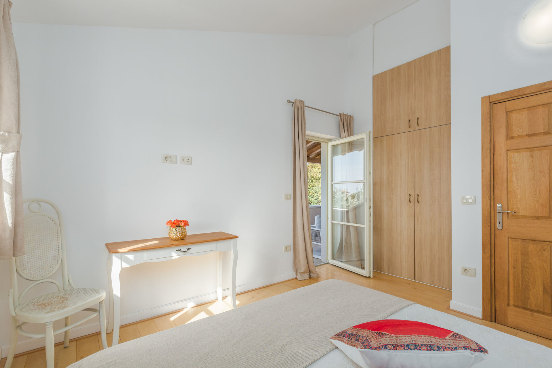 • łóżko. Rodzaj pościeli . Wyjście na balkon z pokoju .