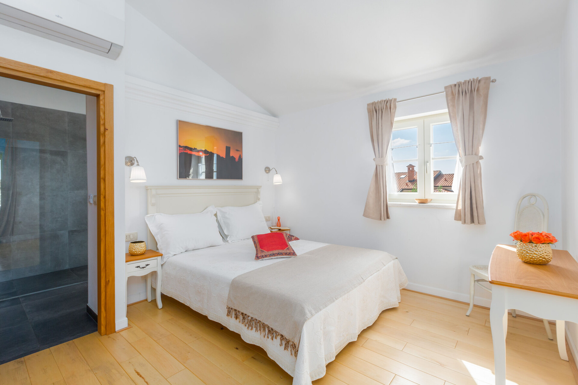 • bezpłatne wifi, widok na morze, Powierzchnia wewnetrzna jest 180 m2 bez tarasu i podwórza, Liczba sypialni 3, Łazienka 4, balkon 1, Tv, Telewizja satelitarna, Klimatyzacja w cenie.