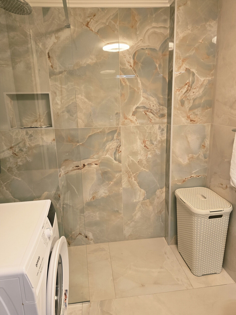 • wanna, pralka, suszarka do włosów, recznik.