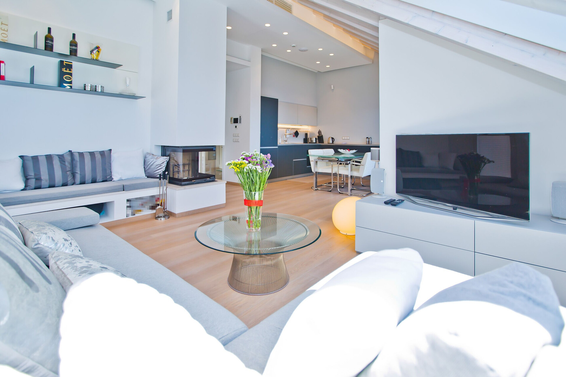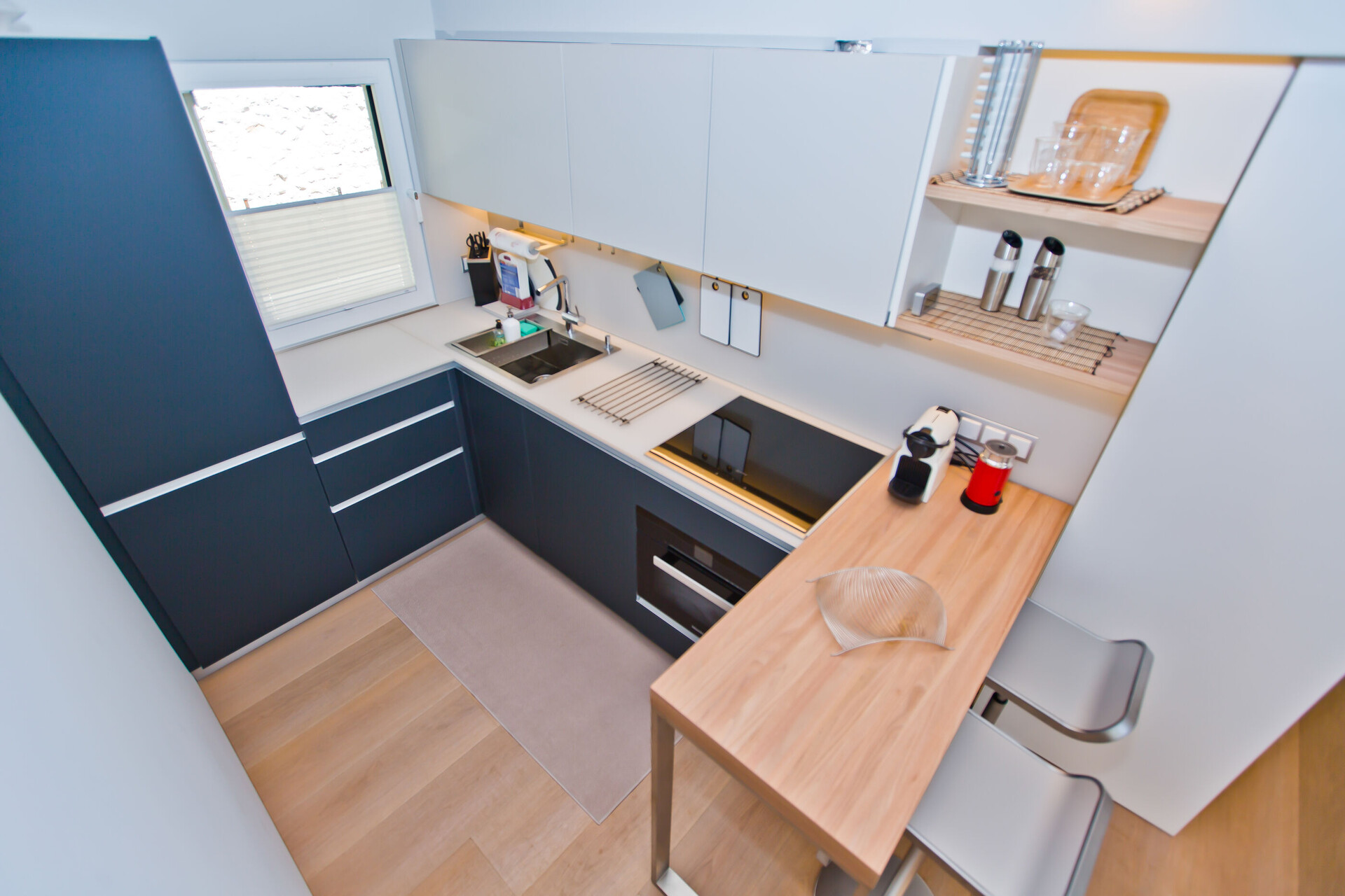 • stół i krzesła, zlew, piekarnik, lodówka, zamrażarka, ekspres do kawy , toster, zmywarka, żelazko, kuchenka.