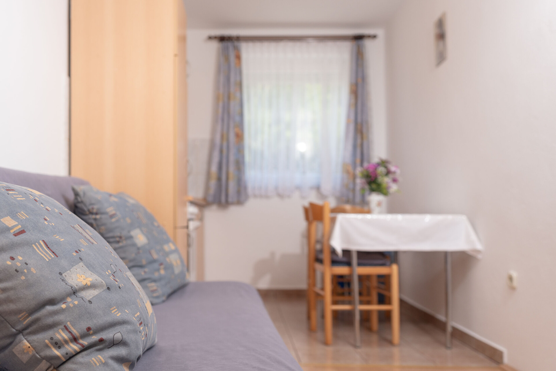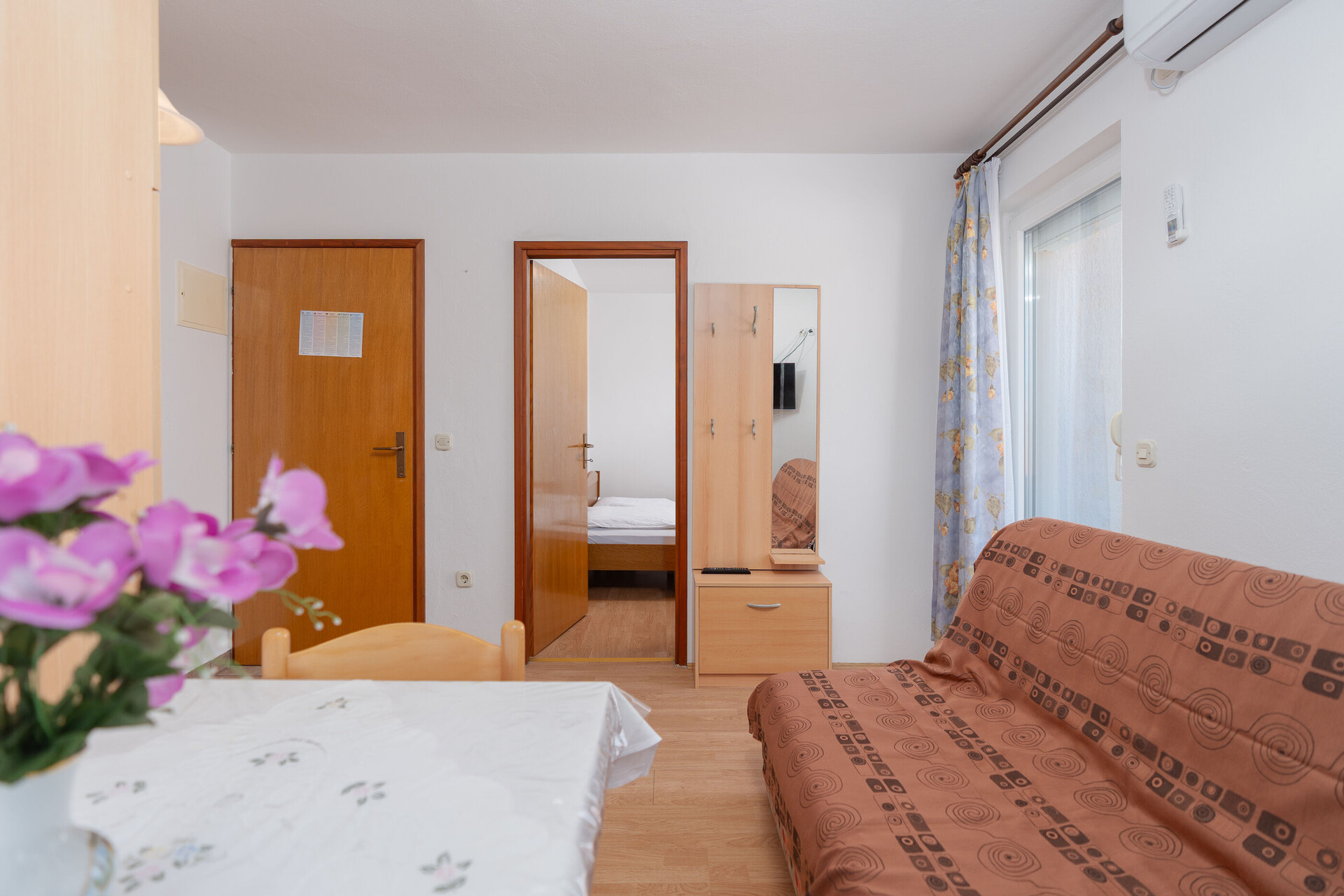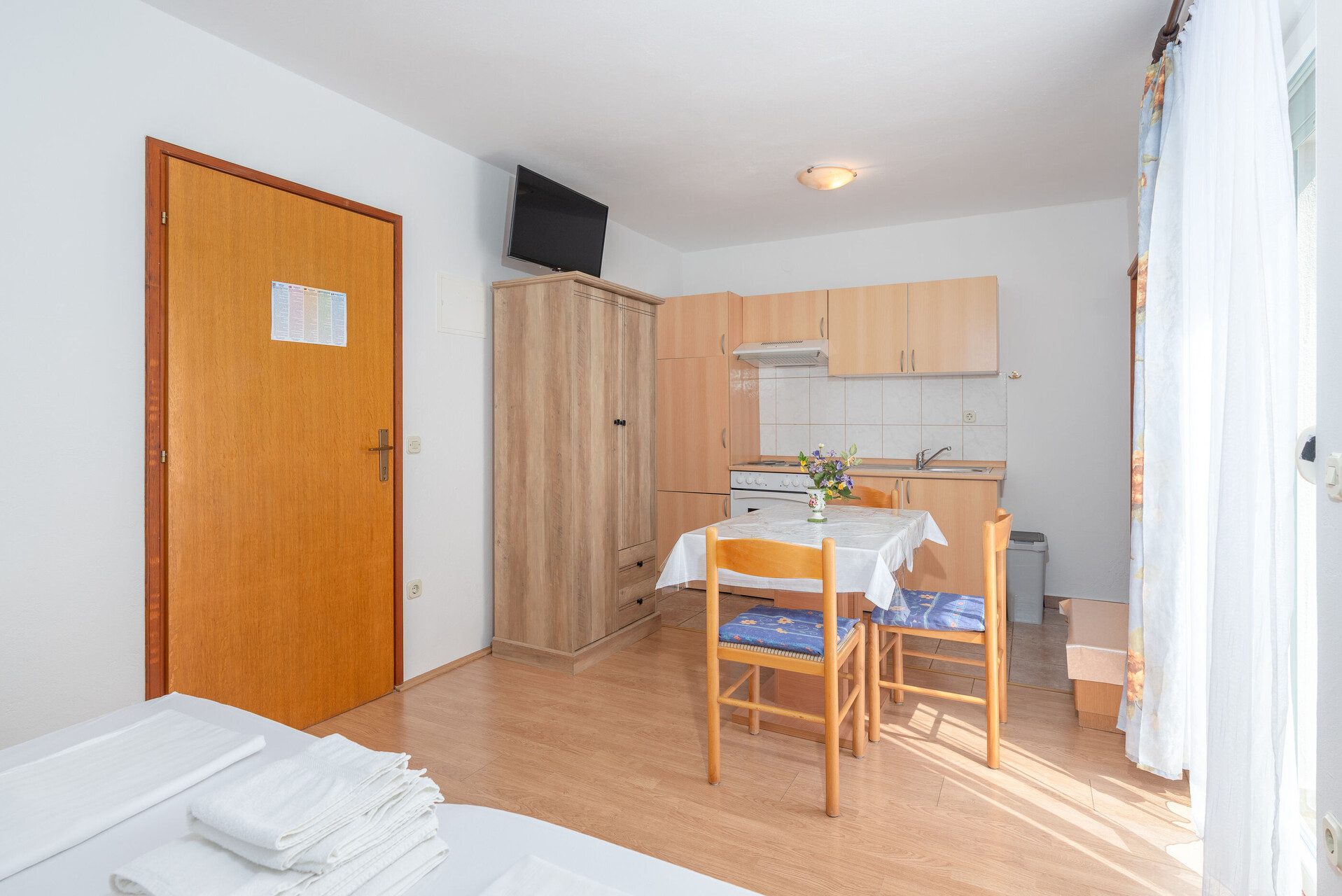 • broj zvezdica: 3. kvadratura unutarnjeg prostora je 21.57 m2. kupatila: 1. balkona: 1. Kreveti: bračni krevet. Posteljina je dostupna. klima uređaj uračunat u cenu, grejanje uključeno u cenu, TV, satelitski programi. jedinica se nalazi na prvom spratu.