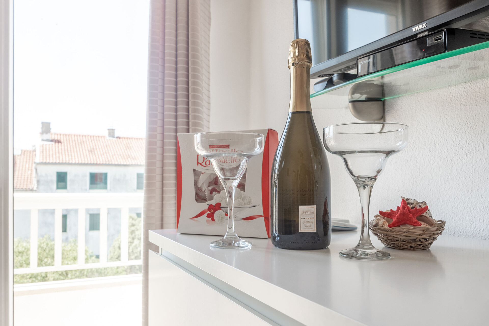 • Kreveti: bračni krevet. Posteljina je dostupna. Iz sobe se izlazi na balkon.