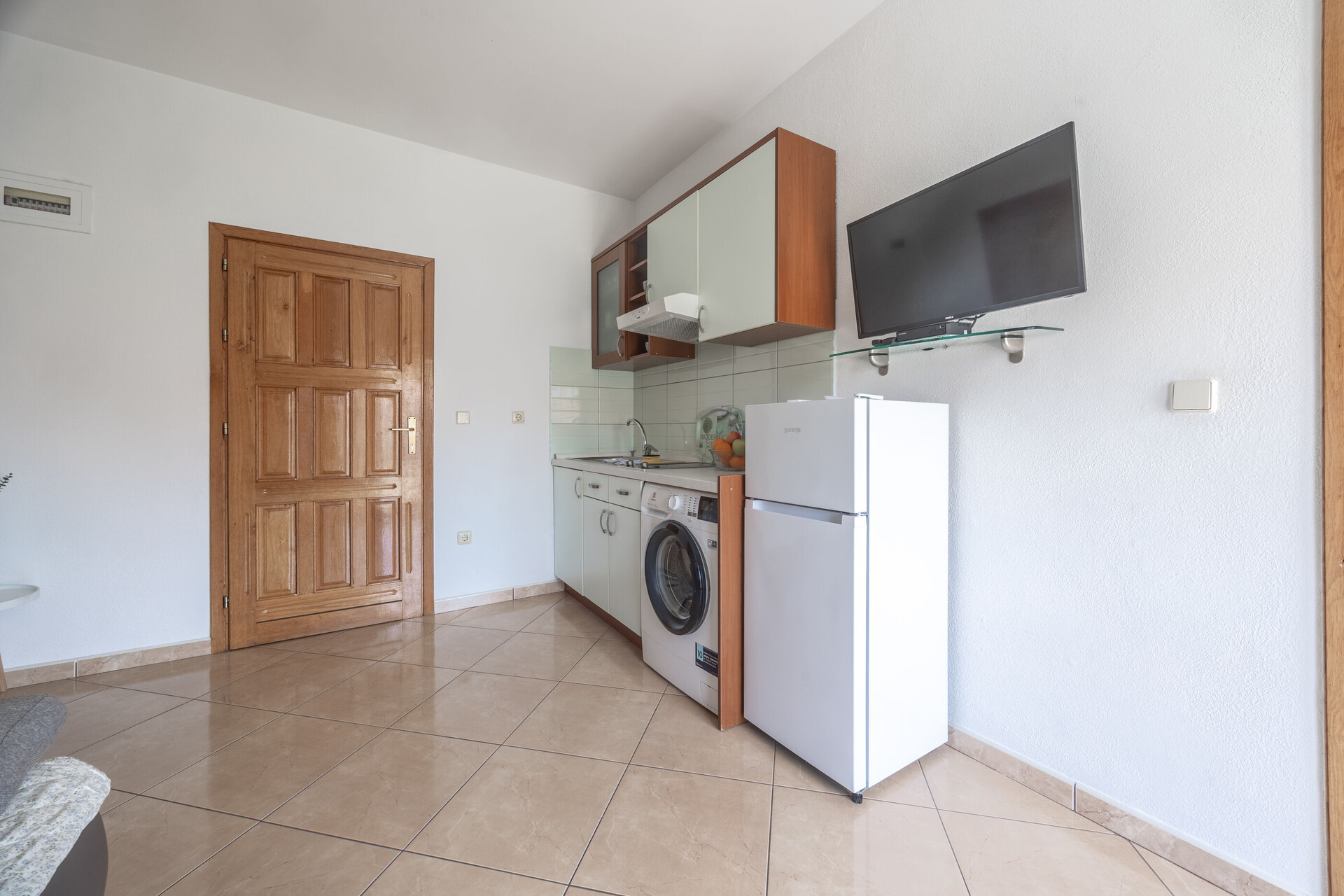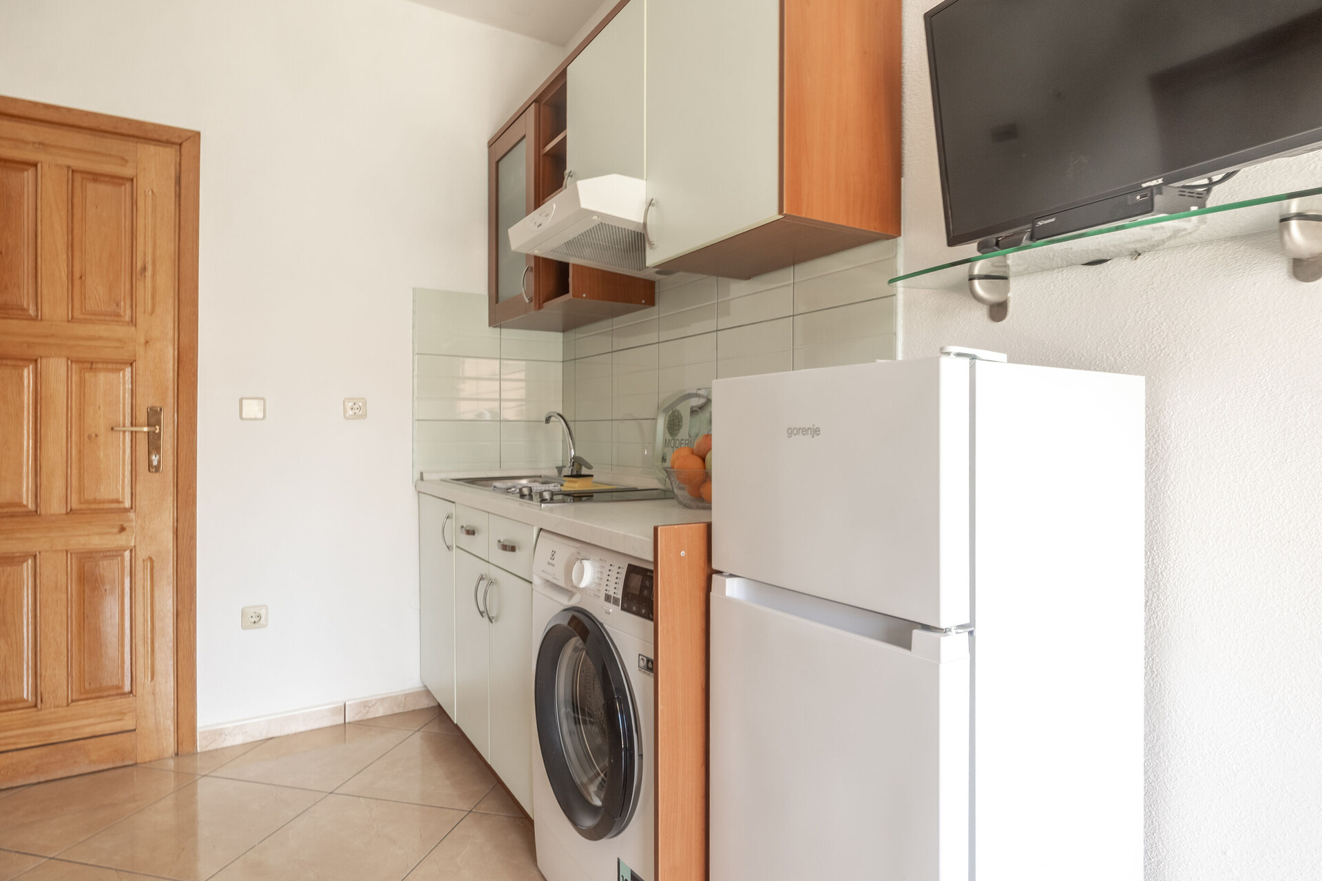 • stol i stolice, sudoper, frižider, zamrzivač, aparat - kuhalo za vodu, aparat za filter kafu, ploča za kuhanje.