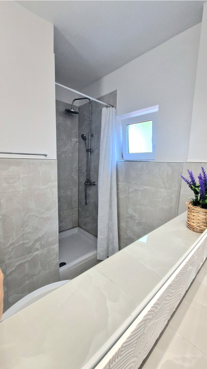 • tuš, tuš kabina, fen, peškiri.