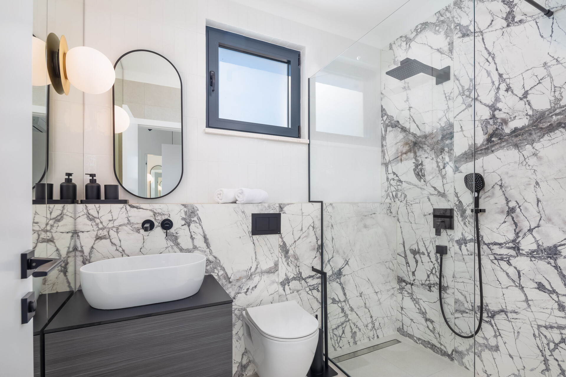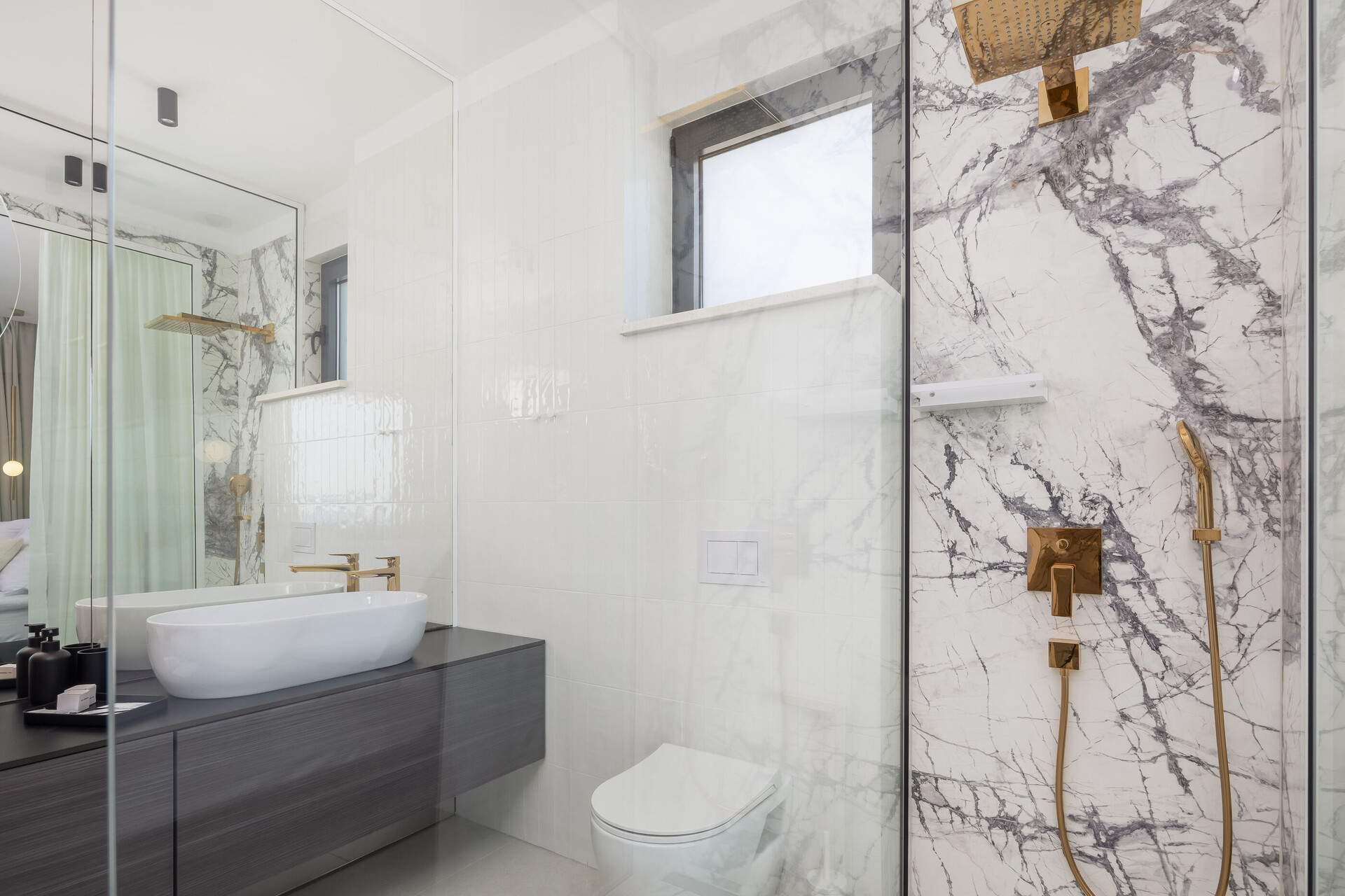 • tuš, tuš kabina, brisače.