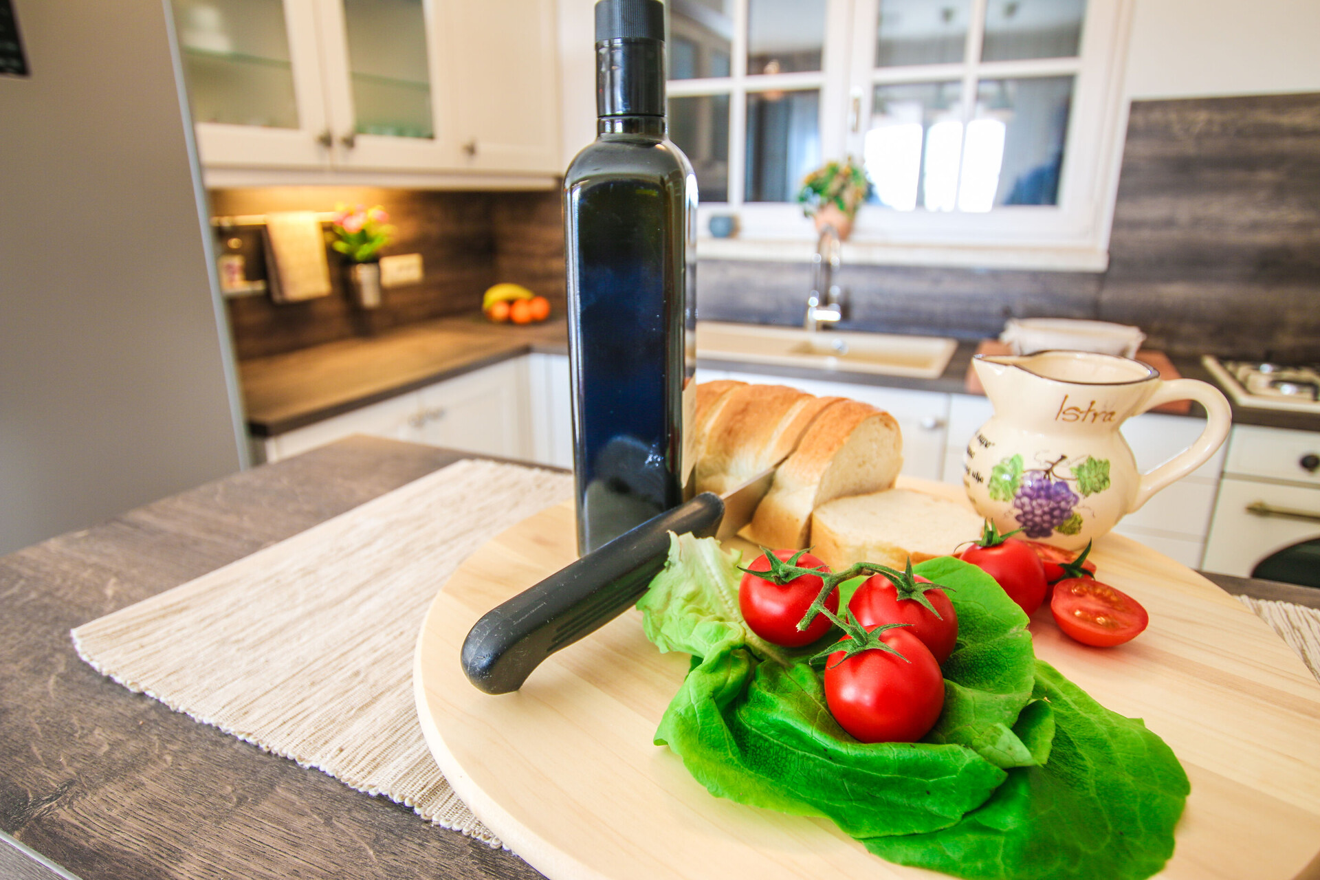 • miza in stoli, pomivalno korito, pečica, hladilnik, zamrzovalnik, aparat - kuhalnik za vodo, aparat za filter kavo, mikrovalovka, opekač, pomivalni stroj, likalnik, kuhalna plošča.