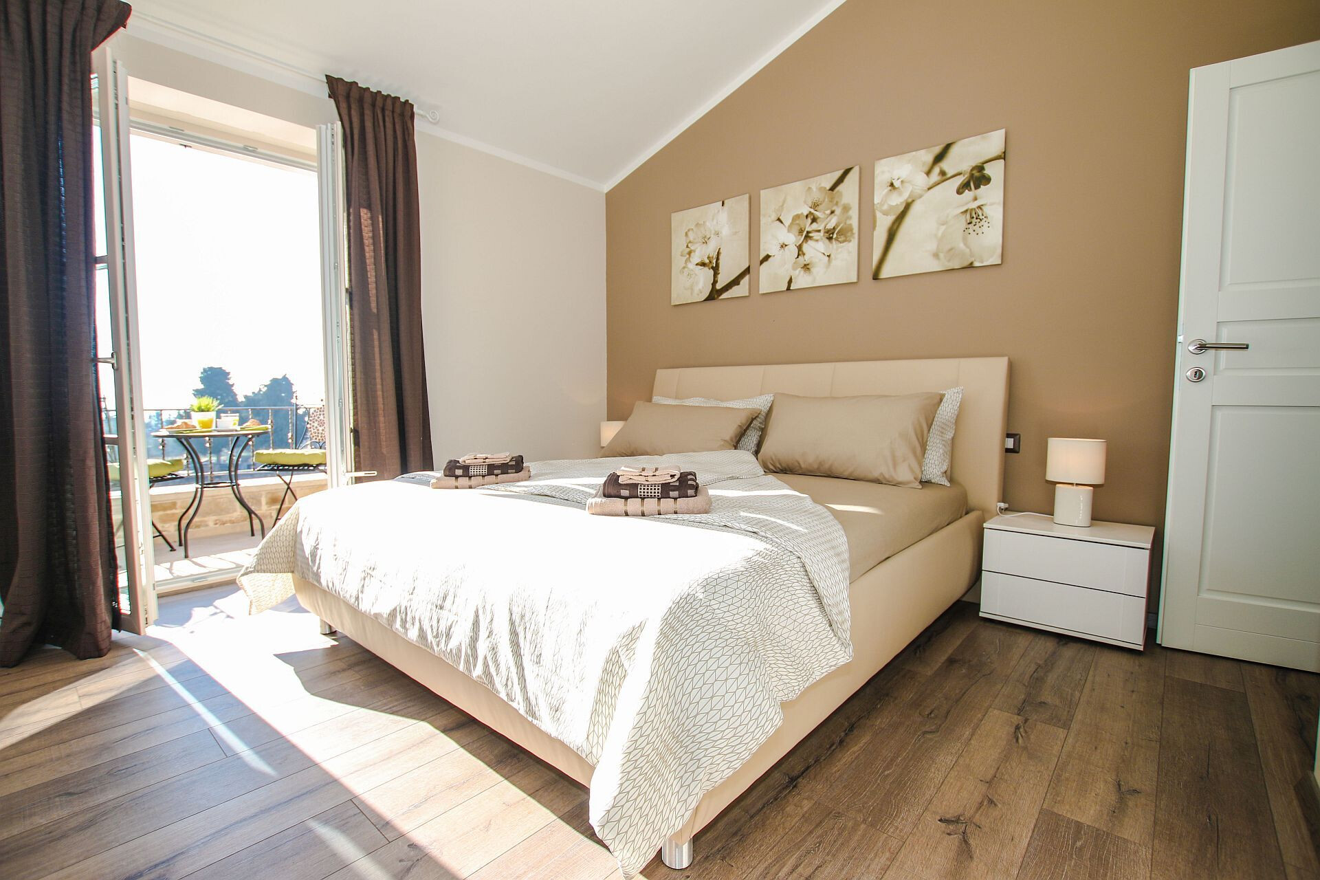 • Postelje: zakonska postelja. Posteljnina je na razpolagi. Iz sobe se izhaja na balkon.