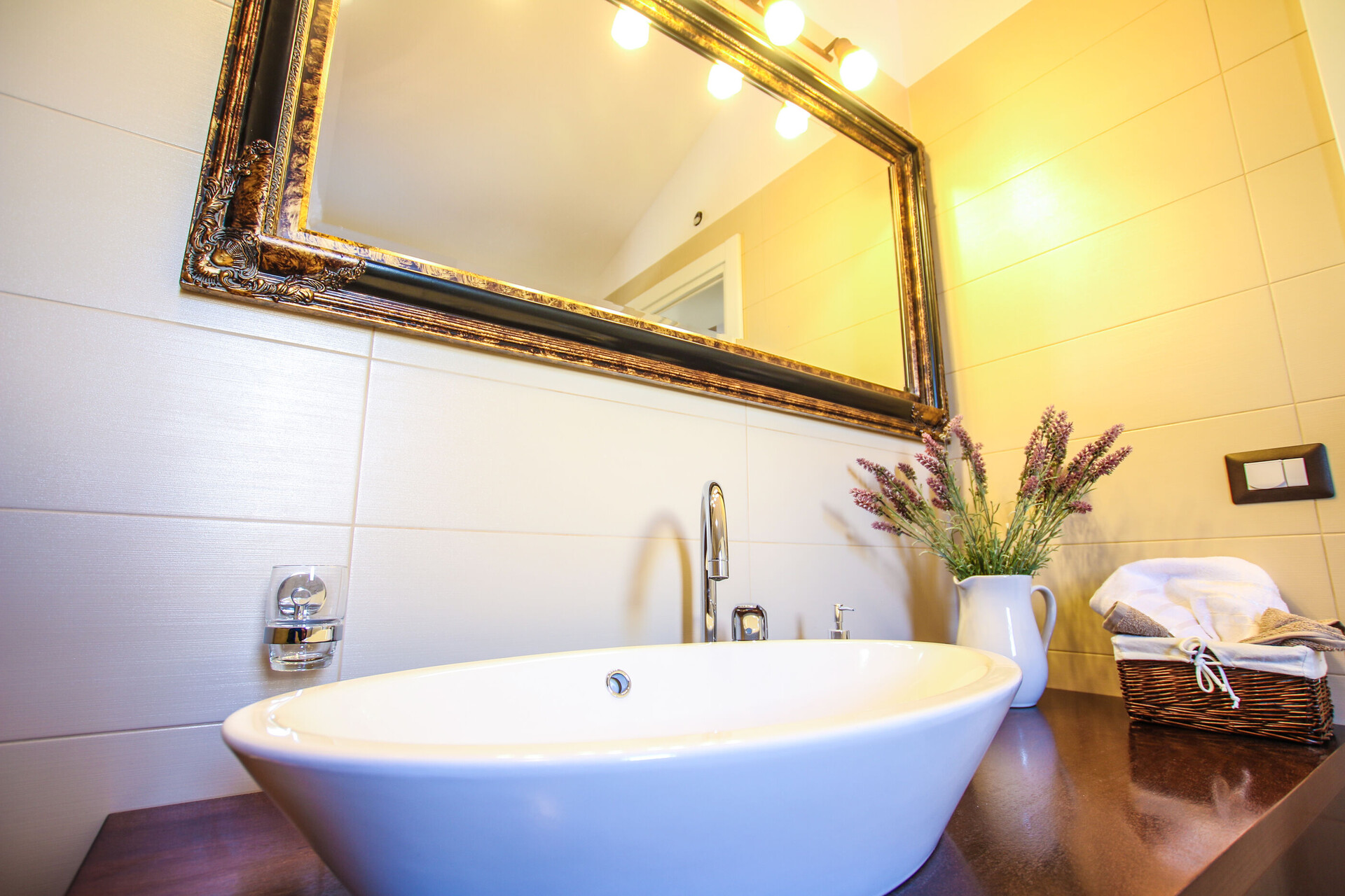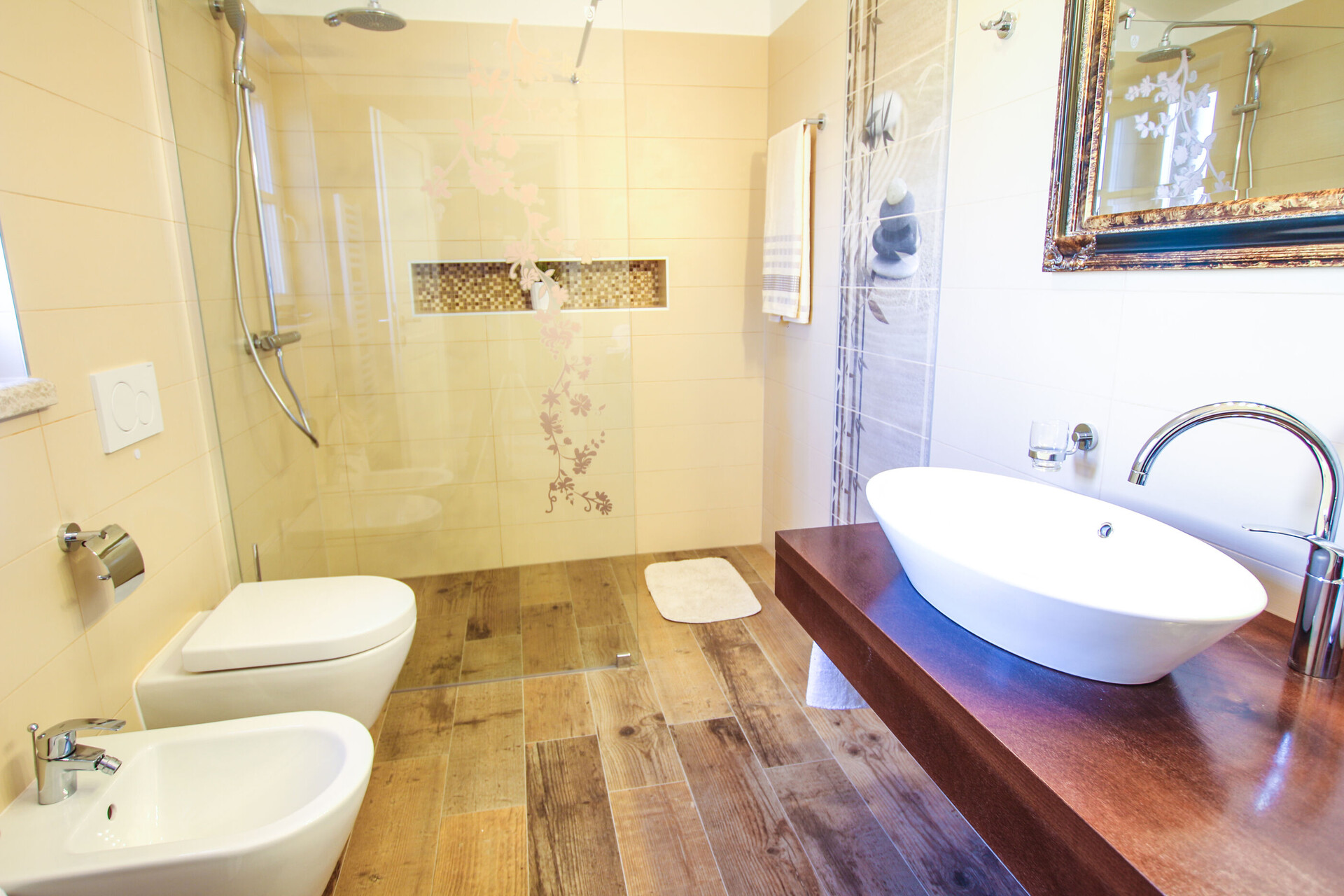 • tuš, tuš kabina, brisače.