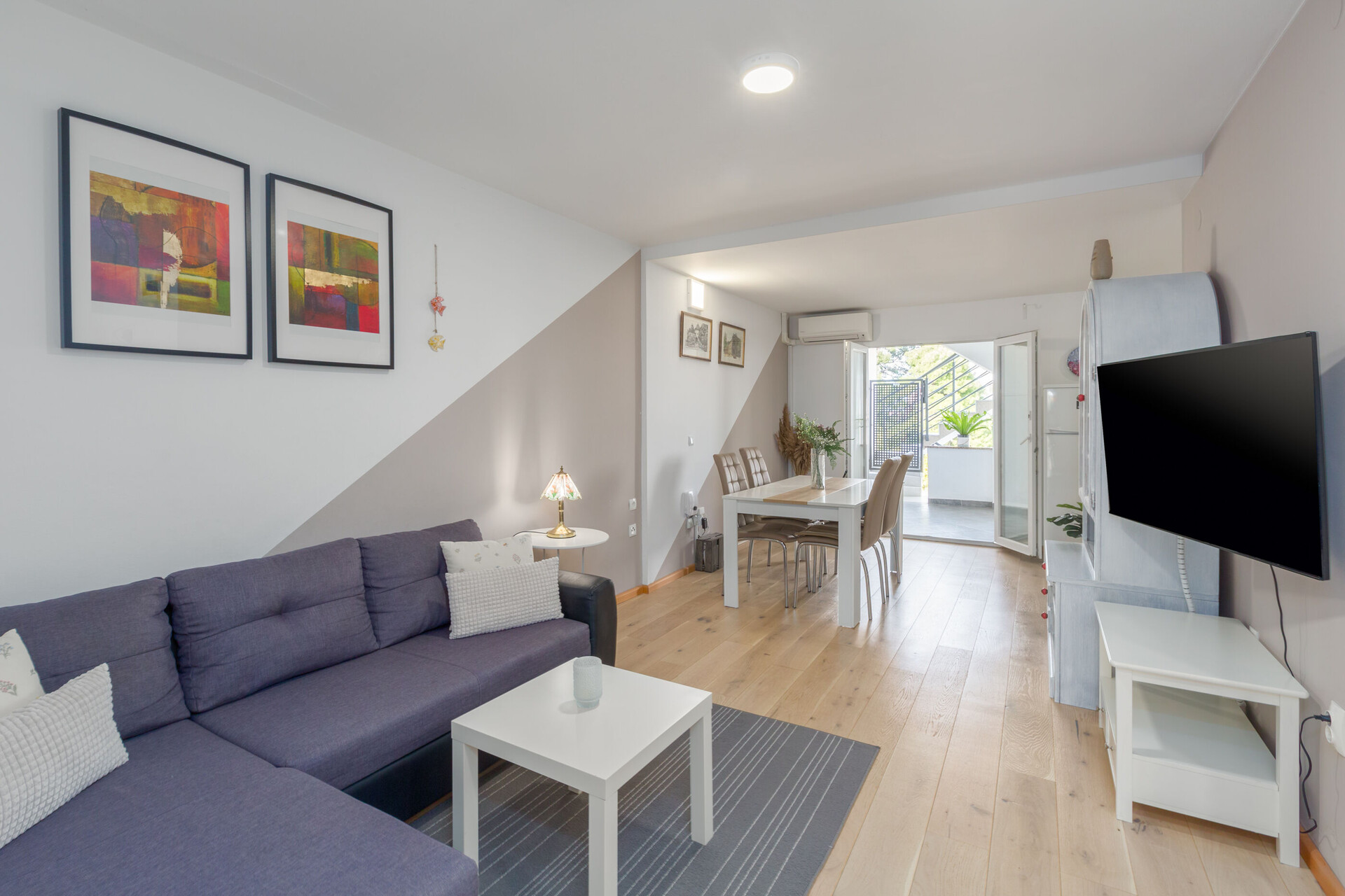 • brezplačen wifi, pogled na vrt, kvadratura notranjega prostora je 65 m2 (brez dvorišča in terase), enota se nahaja na drugem nadstropju, spalnic: 2, kopalnic: 2, balkona: 0, klimatska naprava všteta v ceno.
