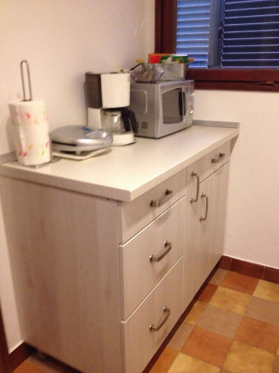 • miza in stoli, pomivalno korito, pečica, hladilnik, zamrzovalnik, aparat - kuhalnik za vodo, mikrovalovka, opekač, pomivalni stroj, likalnik, kuhalna plošča.