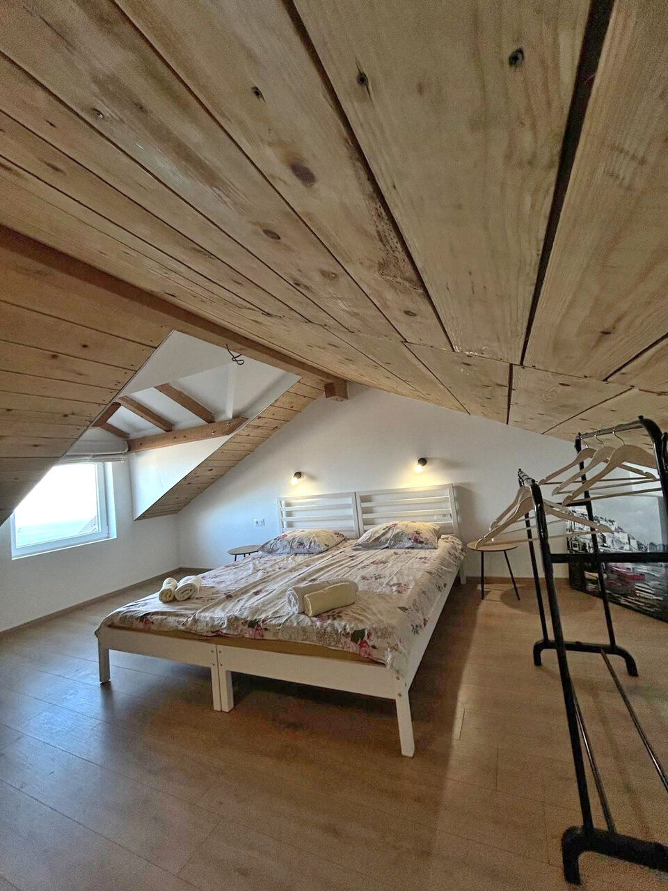 • Postelje: zakonska postelja. Posteljnina je na razpolagi. Iz sobe se izhaja na balkon.