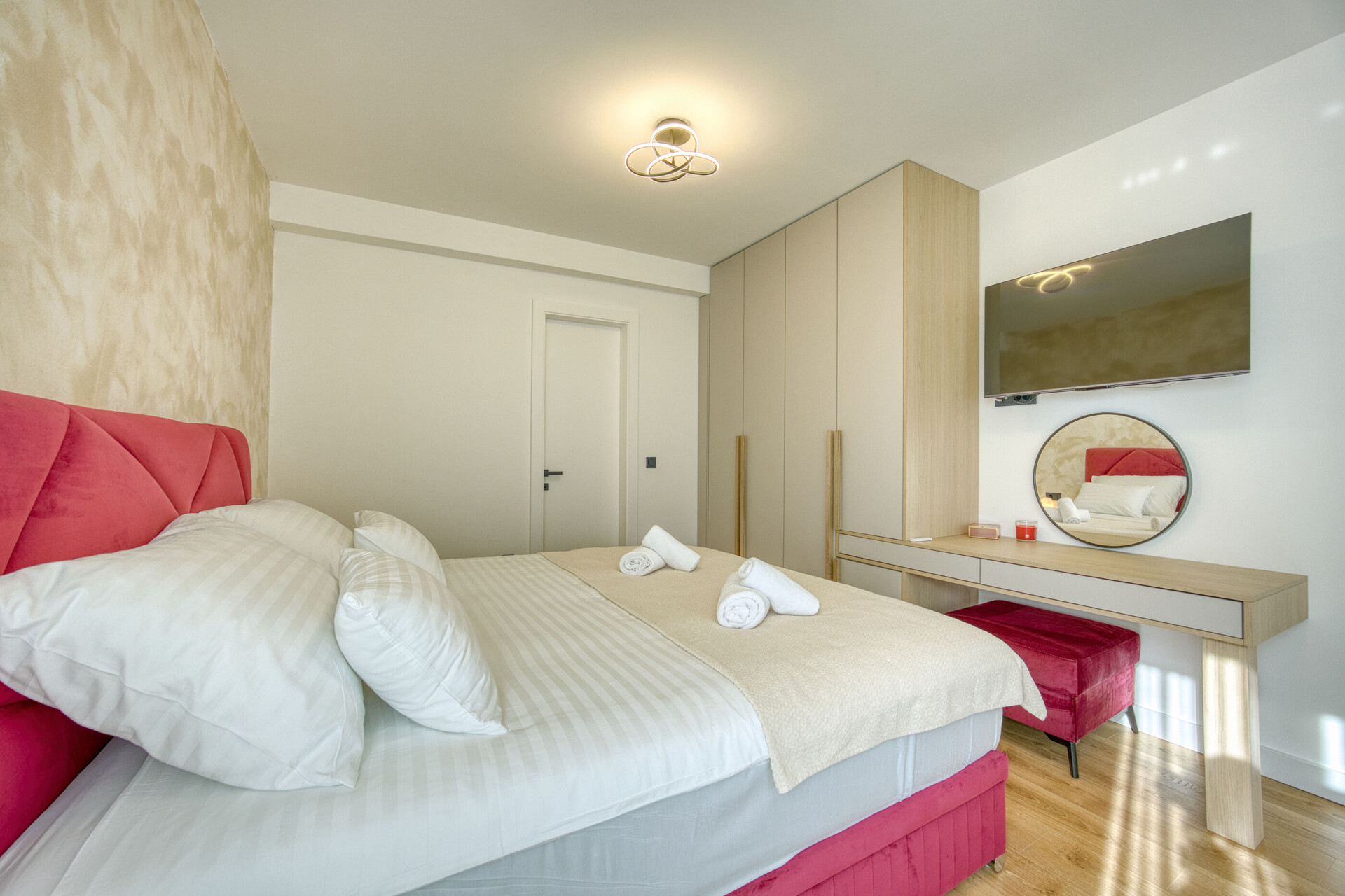• brezplačen wifi, pogled na morje, kvadratura notranjega prostora je 200 m2 (brez dvorišča in terase), spalnic: 4, kopalnic: 5, balkona: 1, klimatska naprava všteta v ceno.