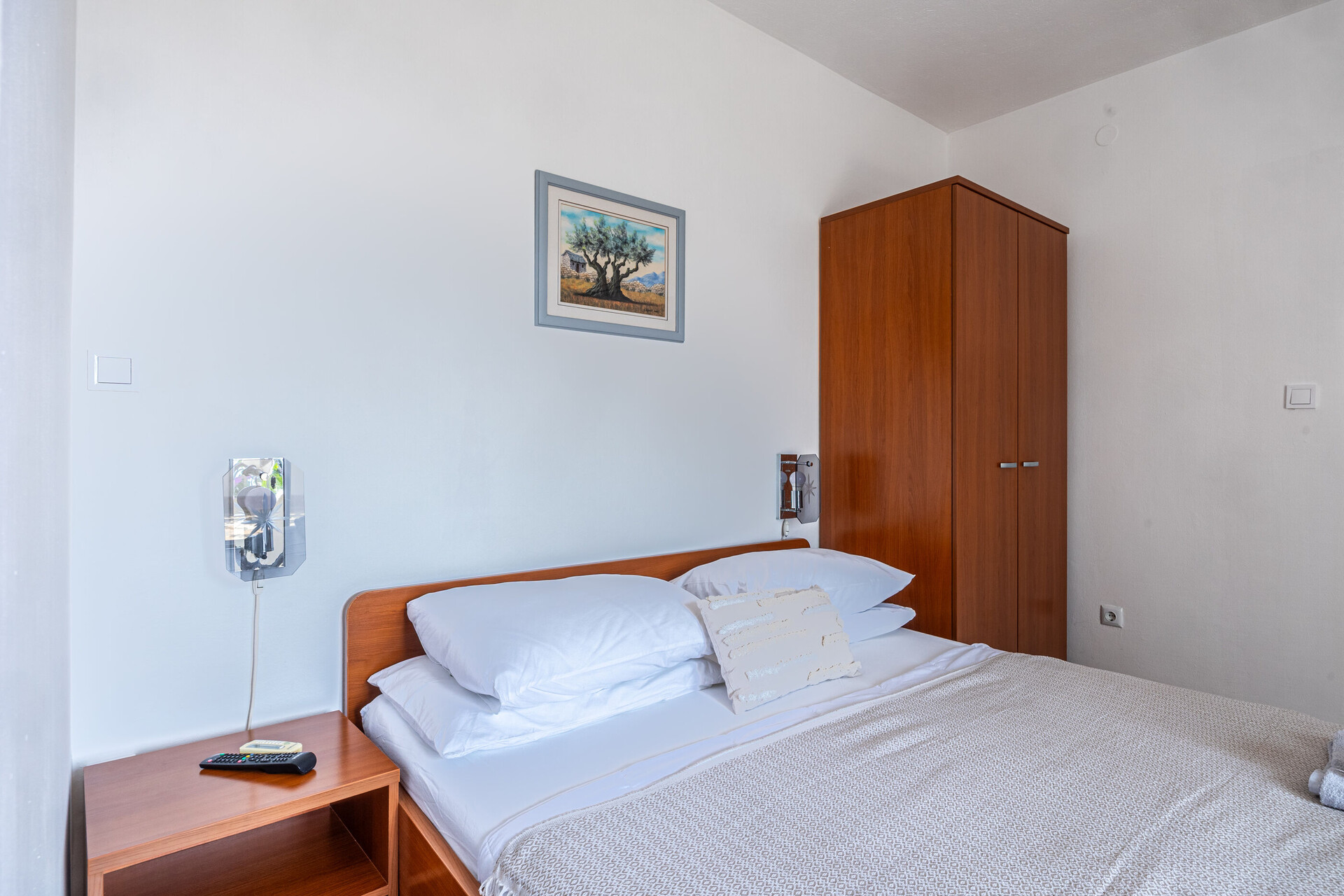 • Postelje: zakonska postelja. Posteljnina je na razpolagi. Iz sobe se izhaja na balkon.