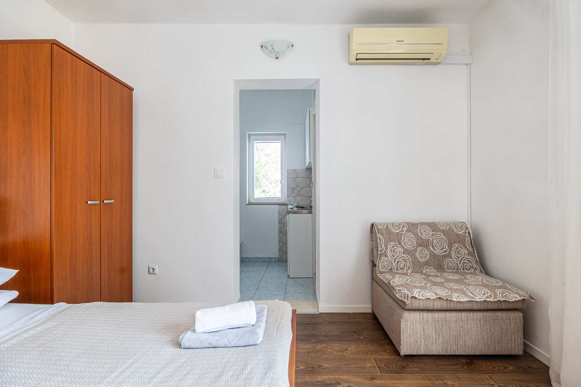 • Število zvezdic: 3. kvadratura notranjega prostora je 25 m2 (brez dvorišča in terase). kopalnic: 1. balkona: 1. Postelje: zakonska postelja. soba ima pomožno ležišče: eno pomožno ležišče. Posteljnina je na razpolagi. klimatska naprava všteta v ceno, gretje všteto v ceno. enota se nahaja na prvem nadstropju.