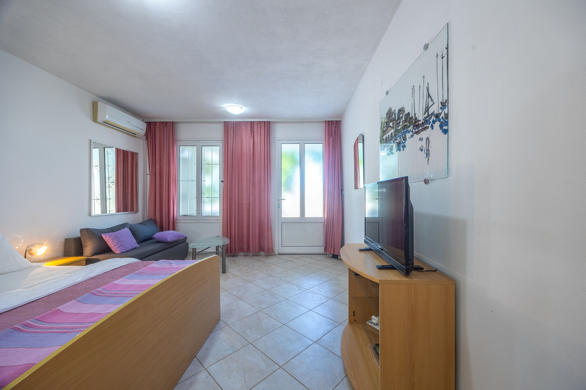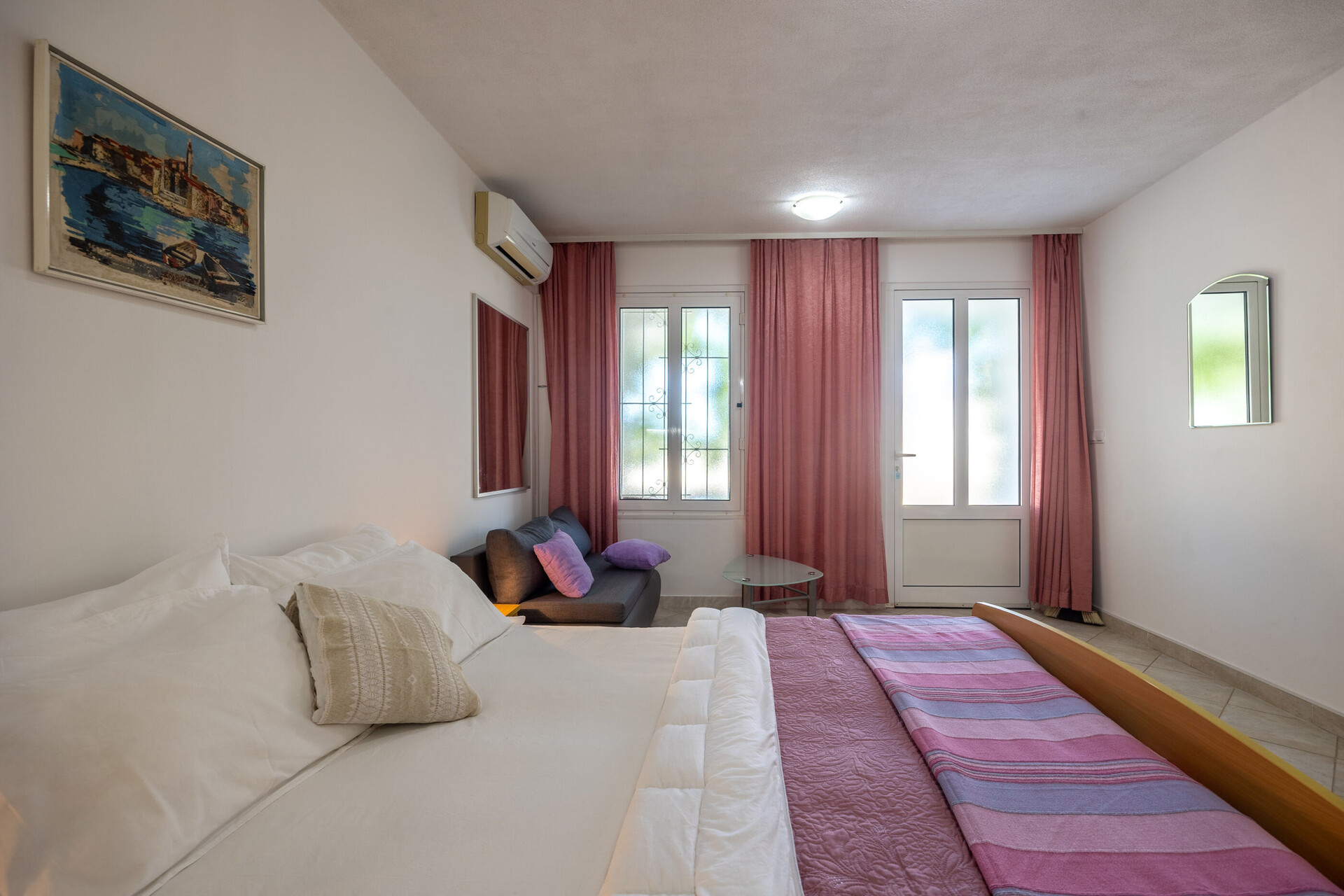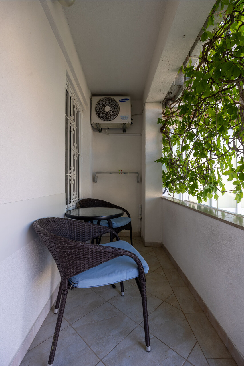 • brezplačen wifi, delni pogled na morje, kvadratura notranjega prostora je 33 m2 (brez dvorišča in terase), enota se nahaja na prvem nadstropju, spalnic: 2, kopalnic: 2, balkona: 1, klimatska naprava všteta v ceno.