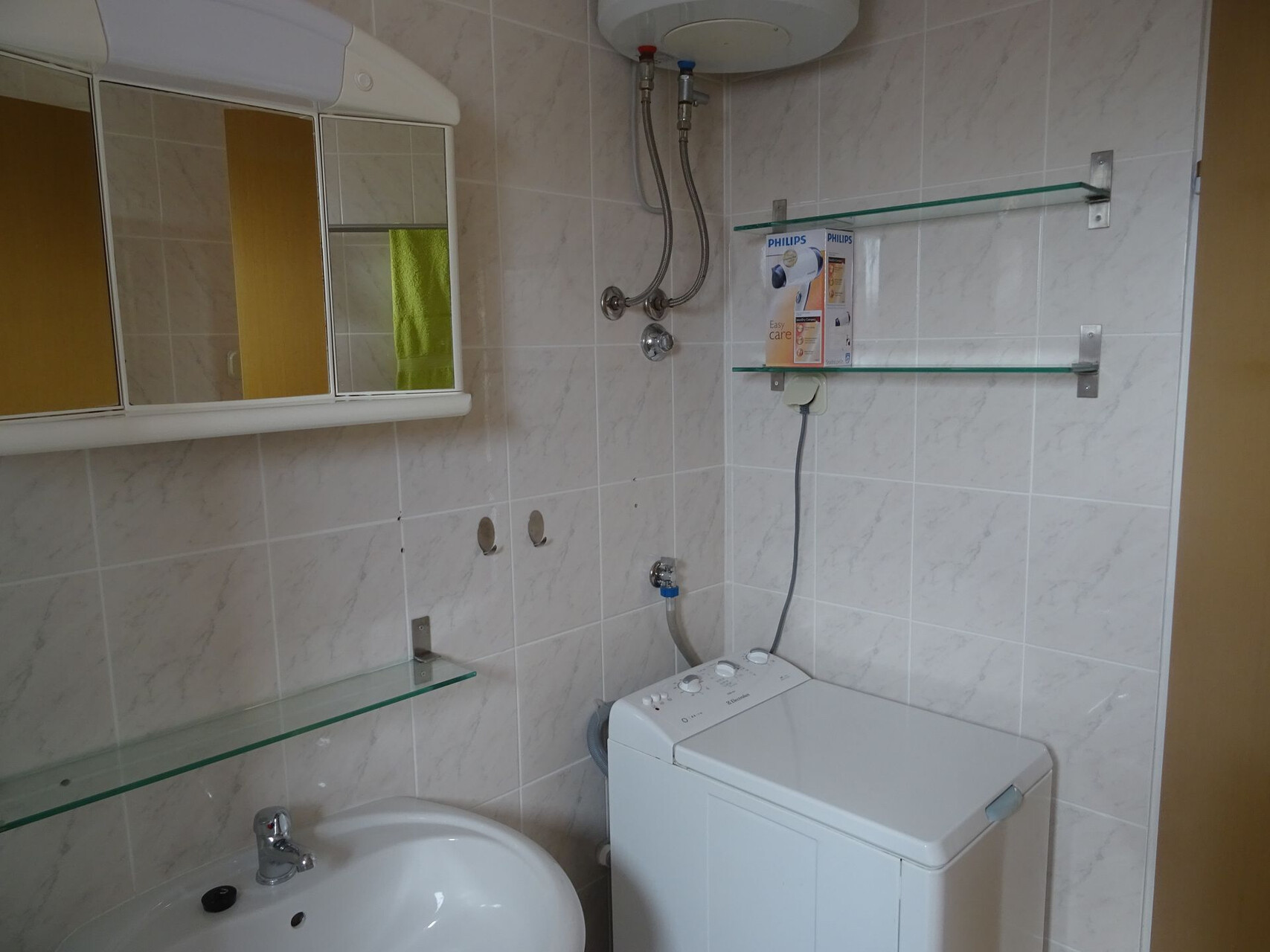 • tuš, tuš kabina, pralni stroj, fen, brisače.