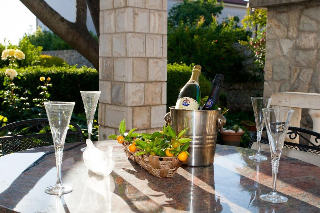 brezplačen wifi, delni pogled na morje, kvadratura notranjega prostora je 180 m2 (brez dvorišča in terase), spalnic: 4, kopalnic: 4, balkona: 1, klimatska naprava všteta v ceno.