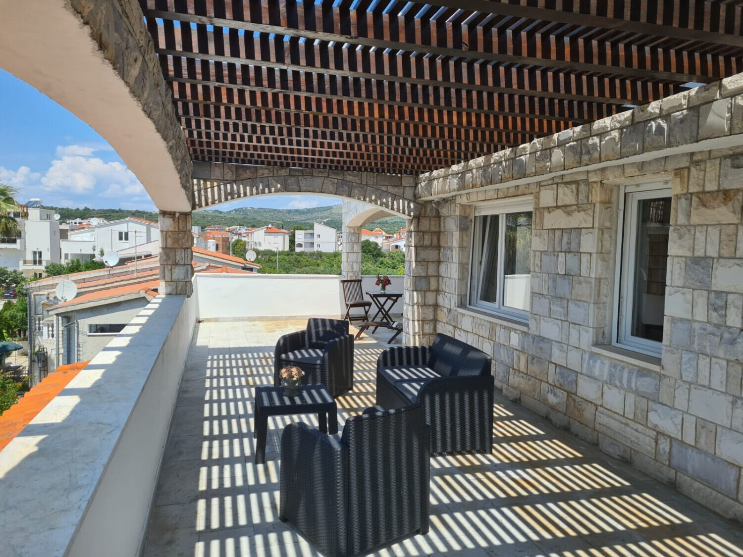 brezplačen wifi, delni pogled na morje, kvadratura notranjega prostora je 280 m2 (brez dvorišča in terase), spalnic: 5, kopalnic: 3, balkona: 1, klimatska naprava všteta v ceno.