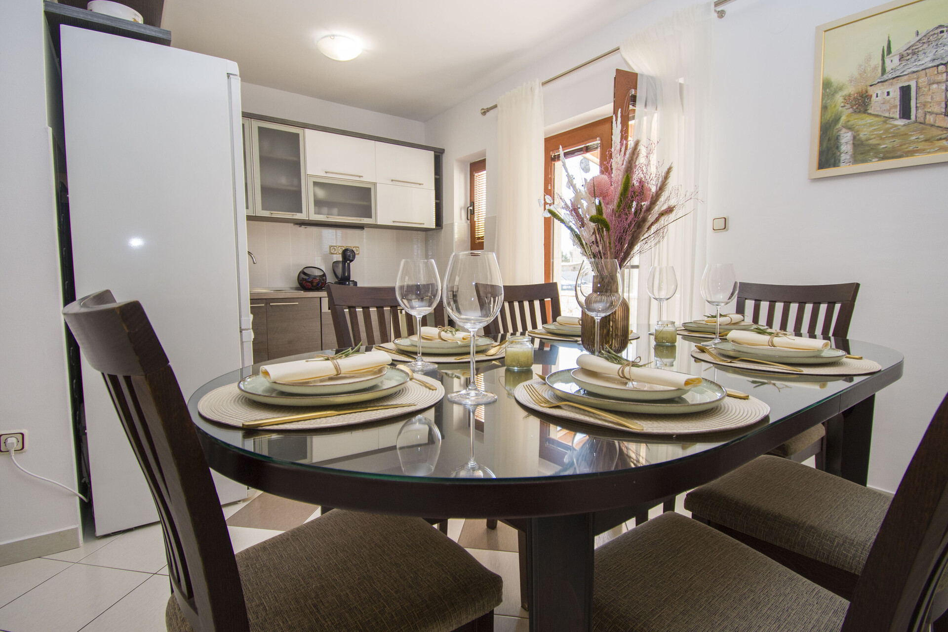 • brezplačen wifi, kvadratura notranjega prostora je 230 m2 (brez dvorišča in terase), spalnic: 4, kopalnic: 2, balkona: 1, klimatska naprava všteta v ceno, TV.